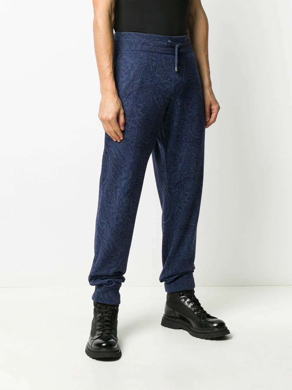Motif cachemire, lien de resserrage à la taille, coupe droite. Matière : cachemire.