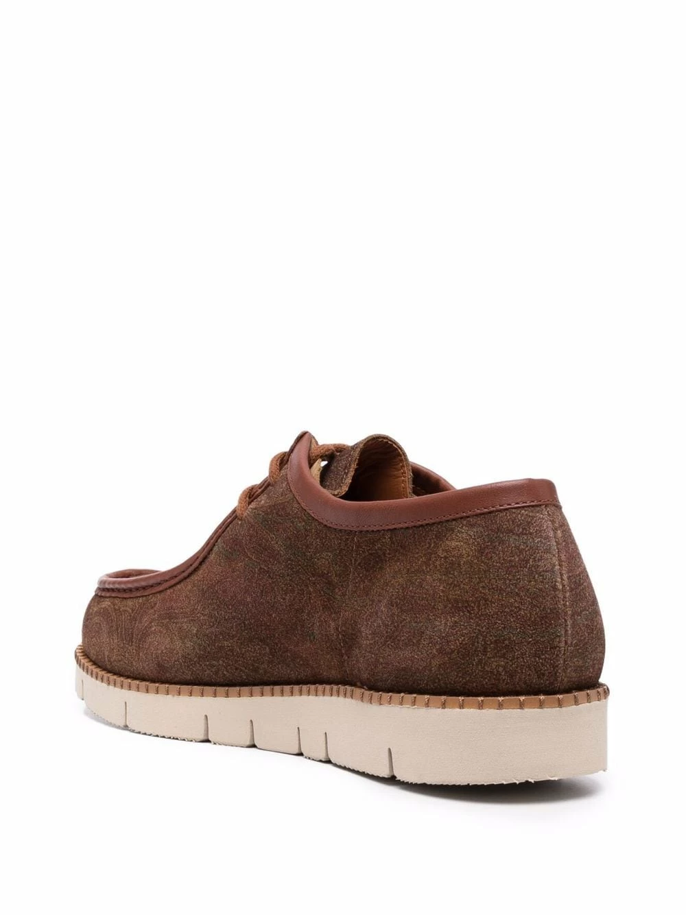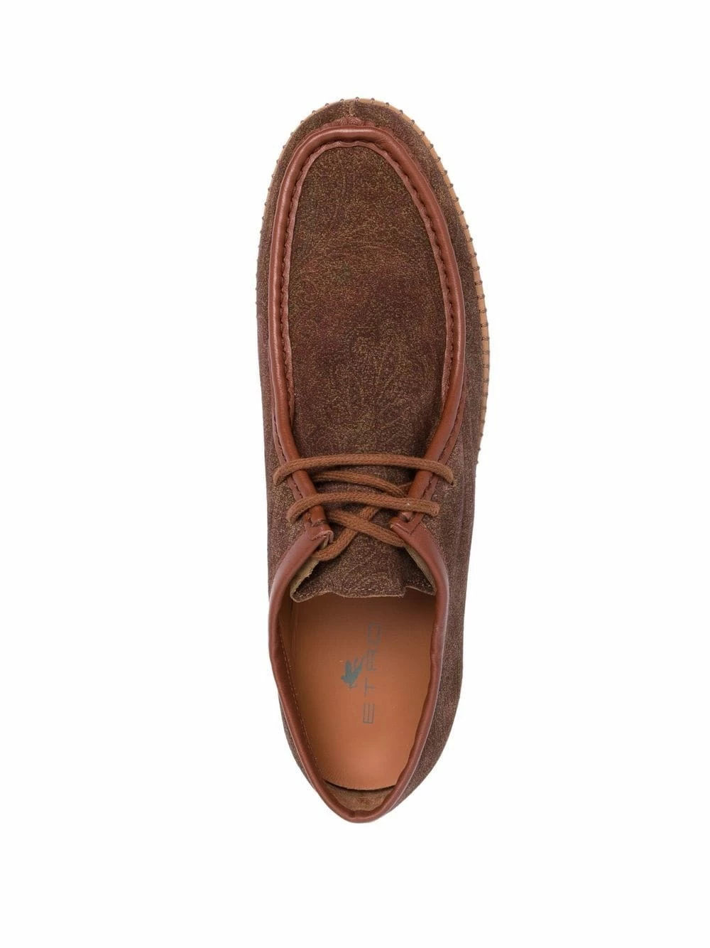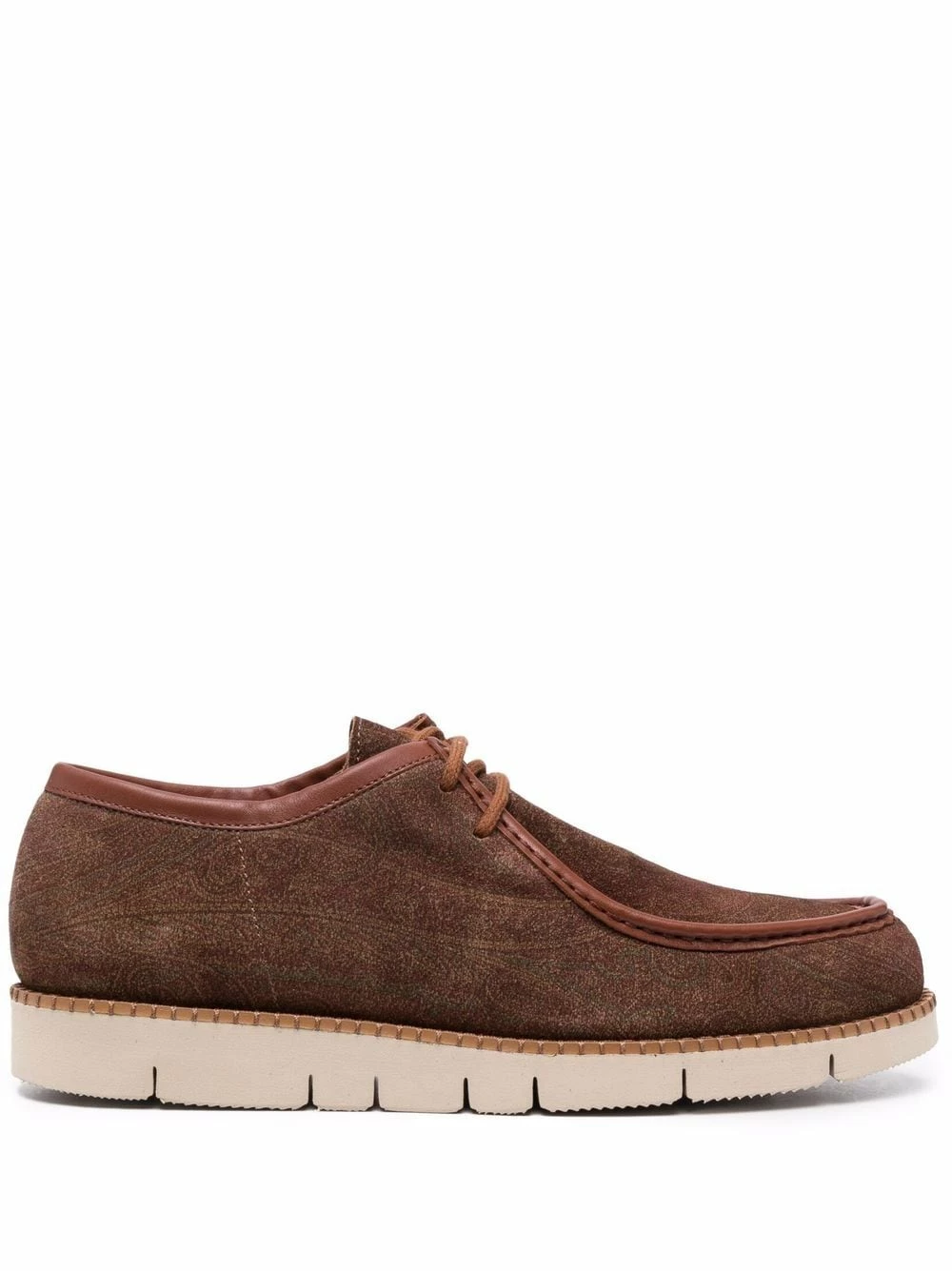 Motif cachemire, bout rond, fermeture à lacer sur le devant, semelle intérieure à logo, semelle plate.