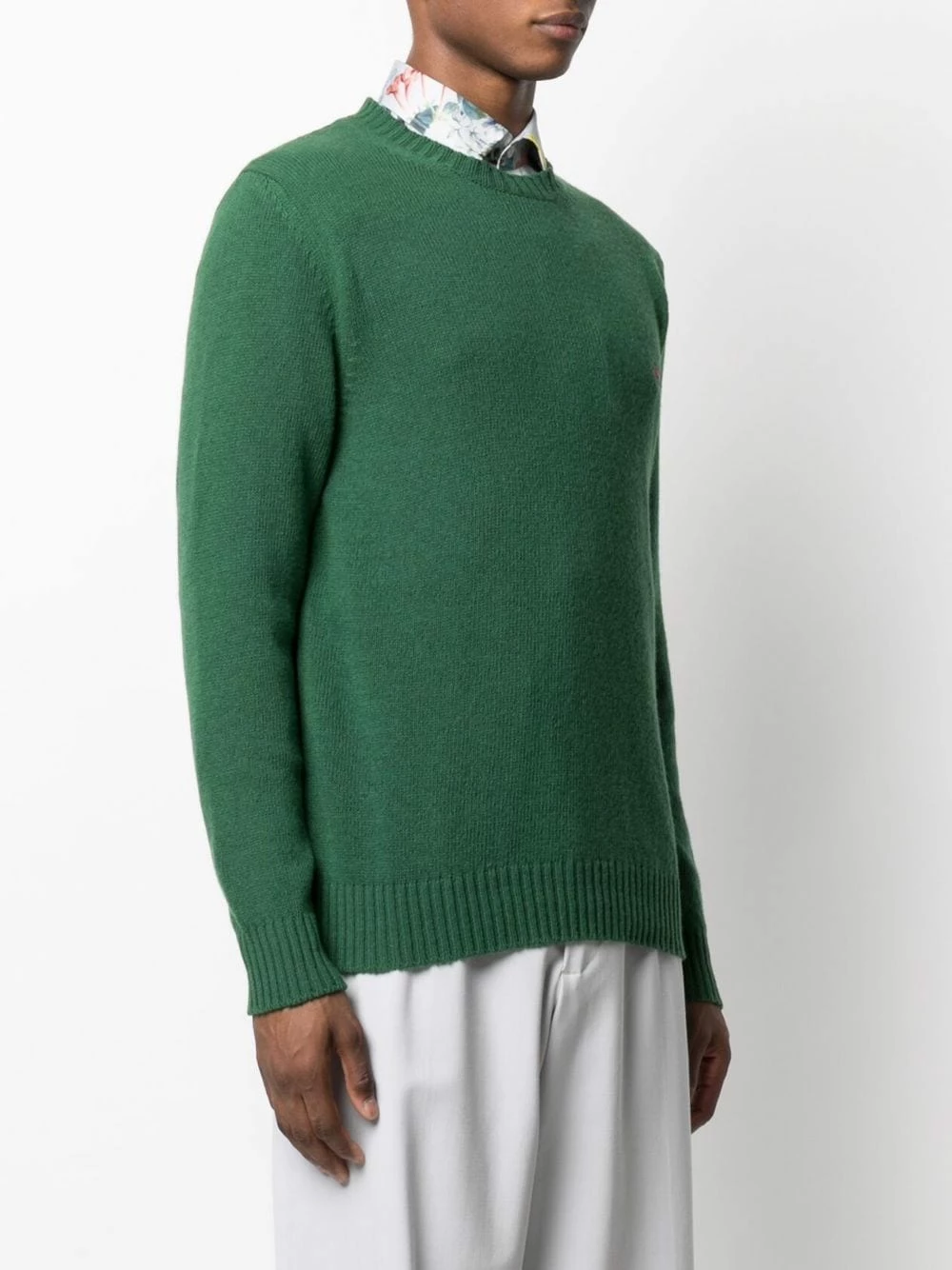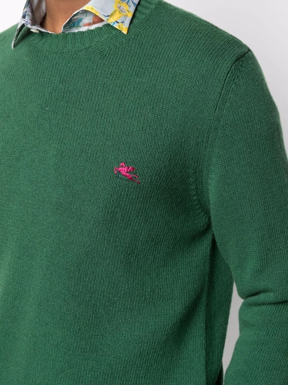 Logo brodé sur la poitrine, encolure ronde, manches longues. Couleur : vert. Matière : laine.