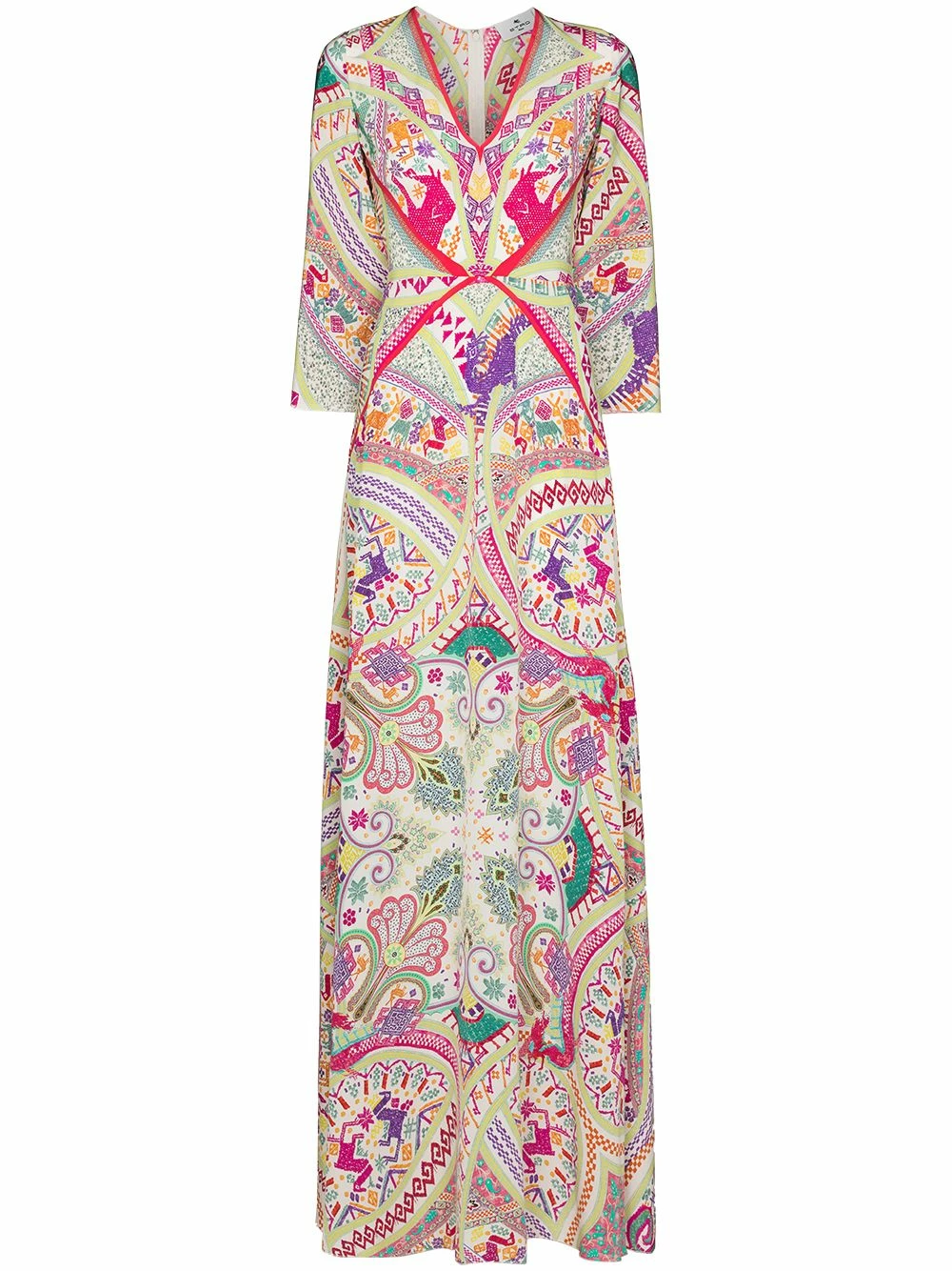 Motif cachemire, col v, manches trois-quarts, ourlet droit. Couleur : multicolore. Matière : soie.
