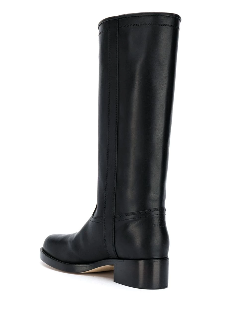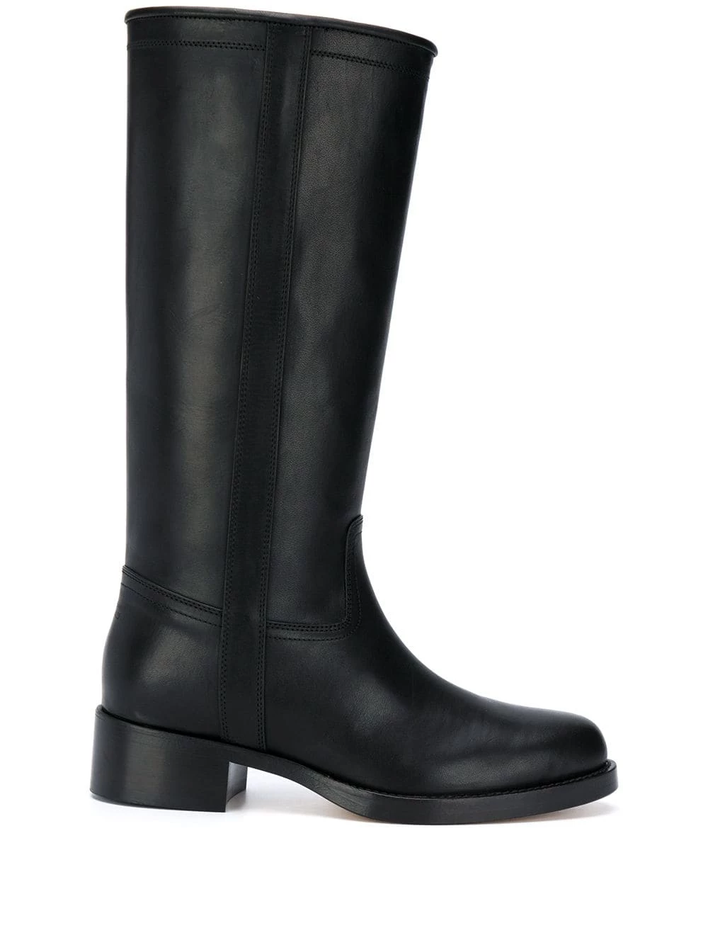 Coutures ton sur ton, design à enfiler, bout rond, longueur genou, talon mi-haut.