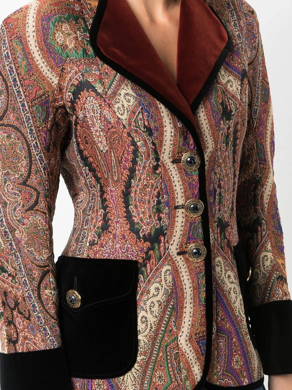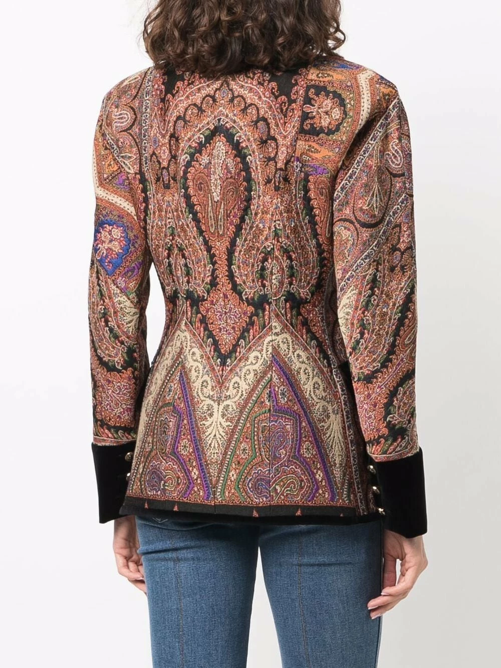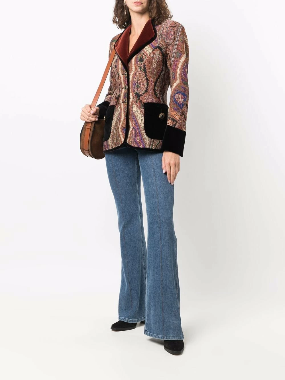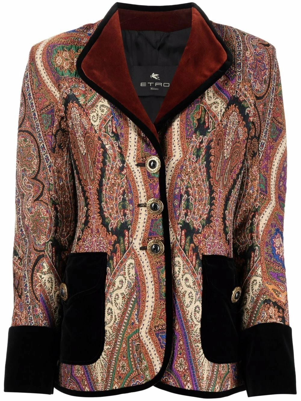 Finitions en velours, col italien, boutonnière sur le devant, manches longues, deux poches plaquées avant, ourlet droit.
