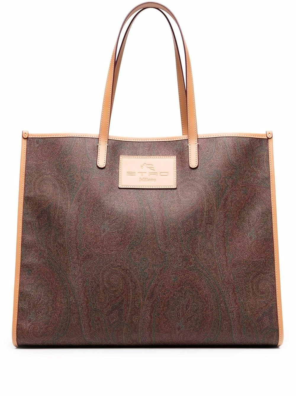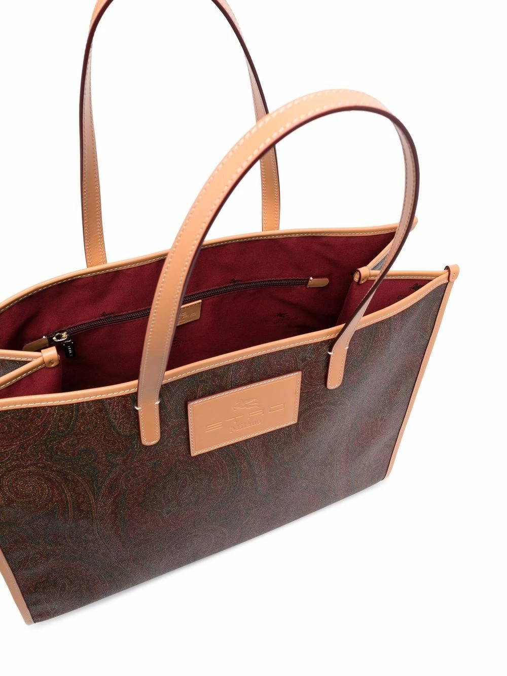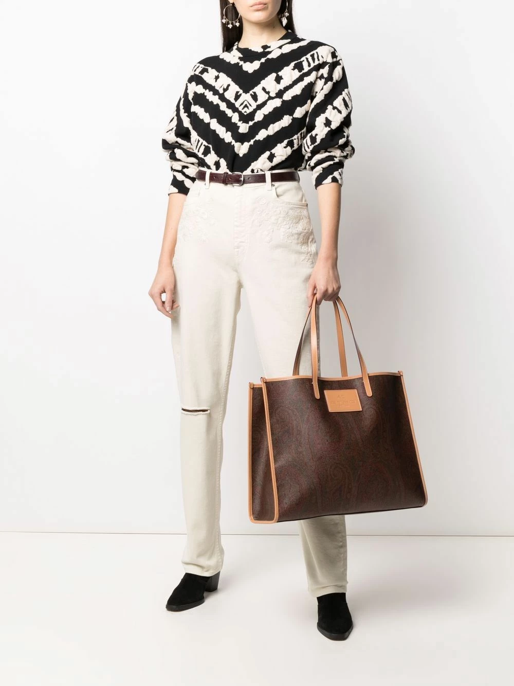 Motif cachemire, patch logo sur le devant, anses sur le dessus, ouverture sur le dessus, compartiment principal, poches intérieures zippées, patch logo intérieur.