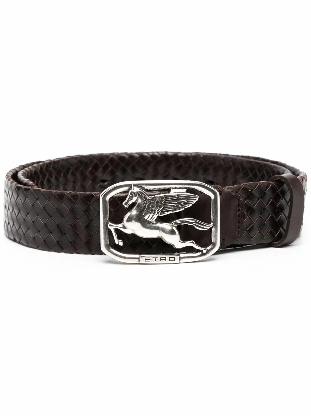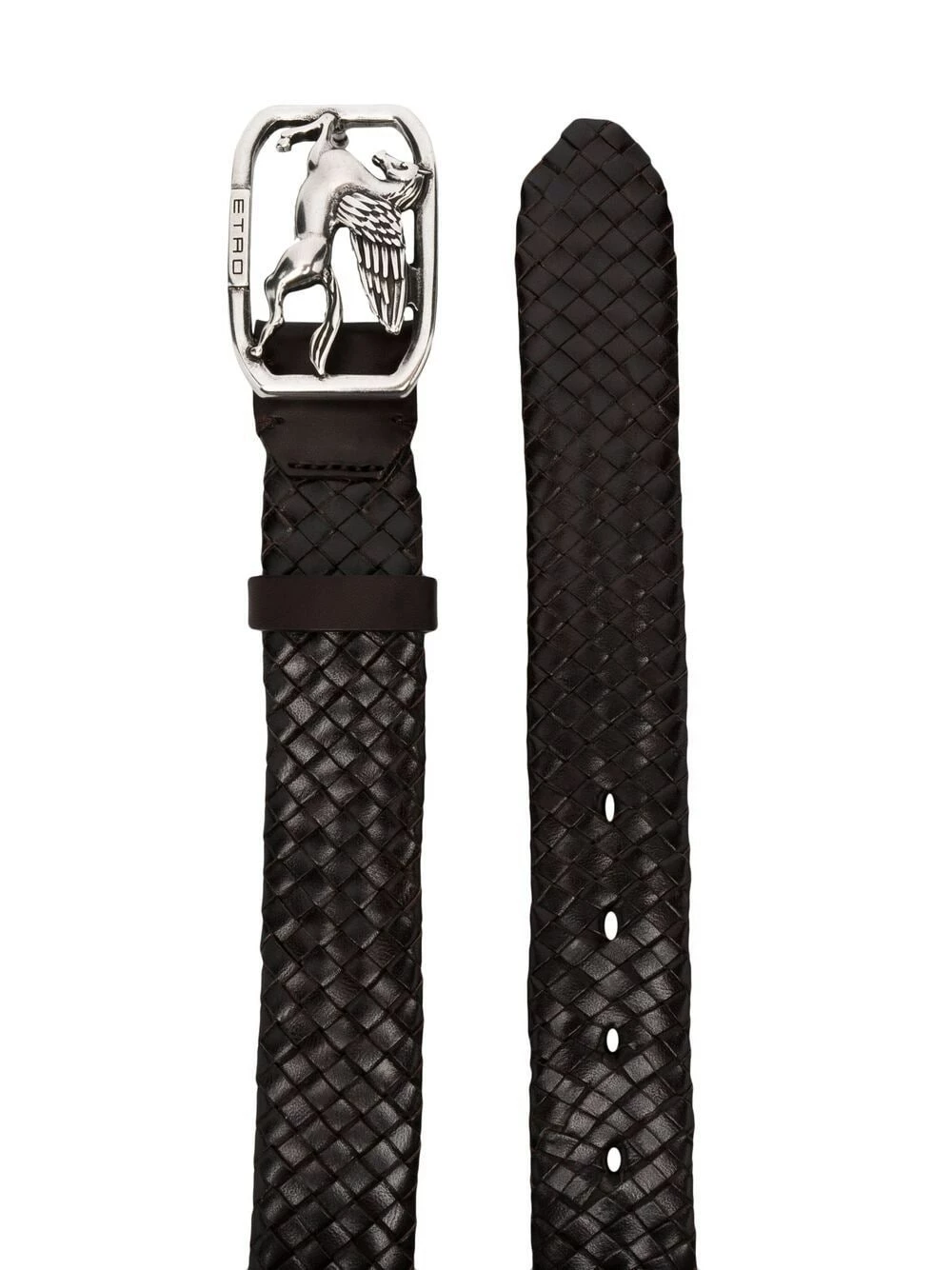 Design tissé, plaque logo, détails de perforation, fermeture à boucle.