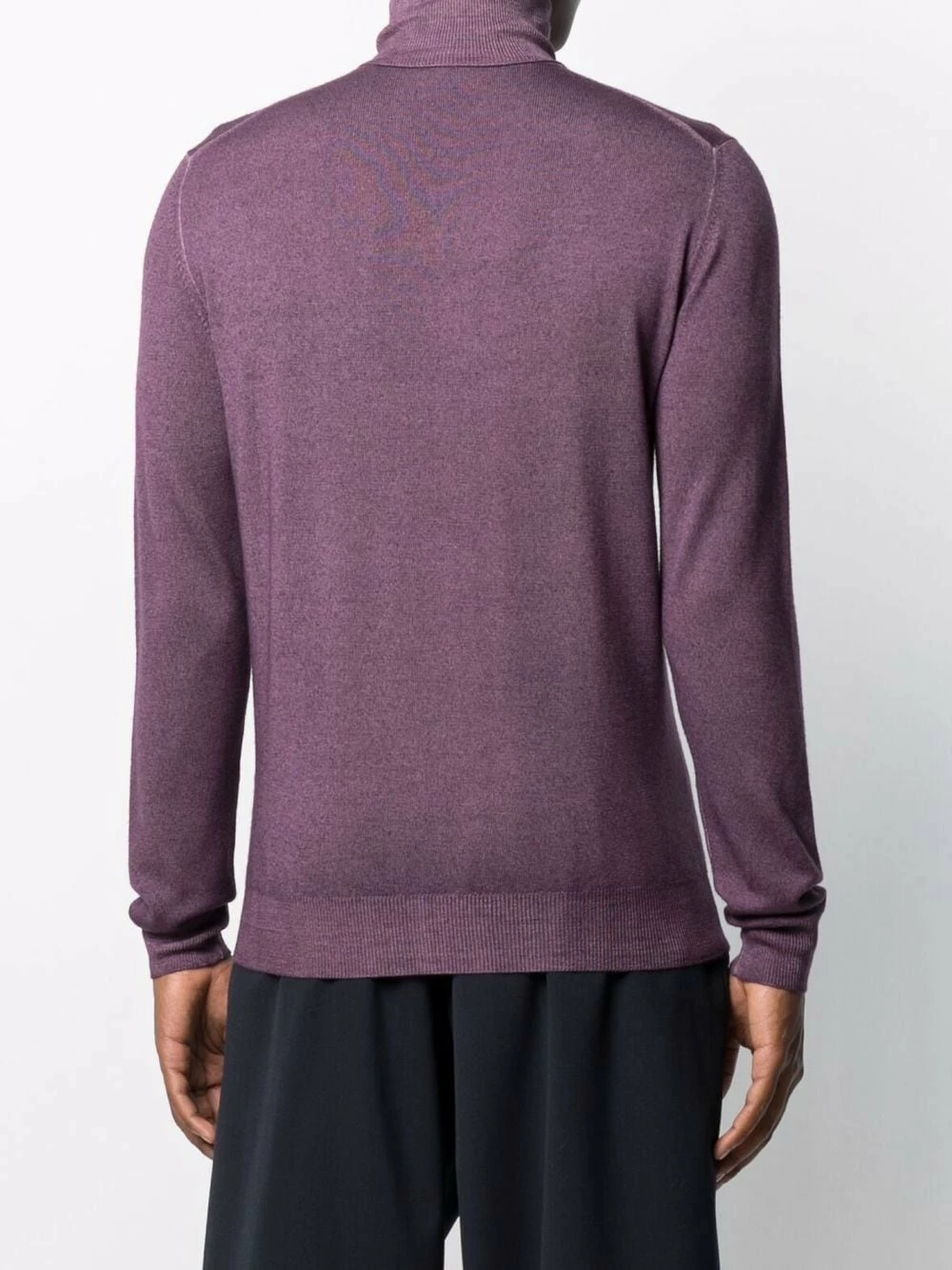 Détail nervuré, col roulé, manches longues, ourlet droit. Couleur : violet. Matière : laine vierge.