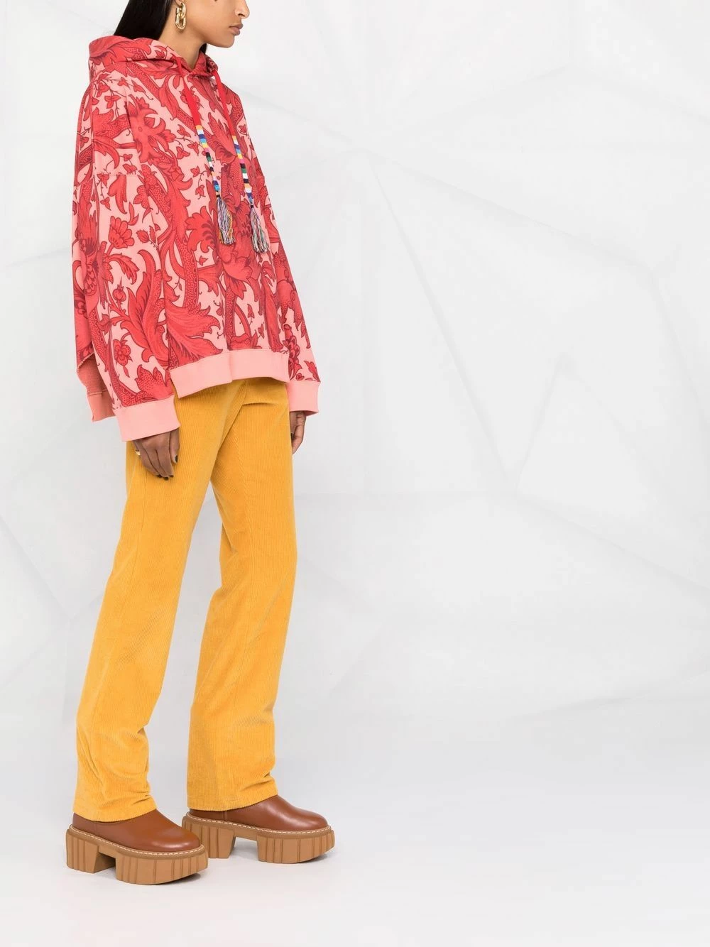 Polaire, motif baroque, manches longues, manches à poignets resserrés, capuche à lien de resserrage, ourlet droit.