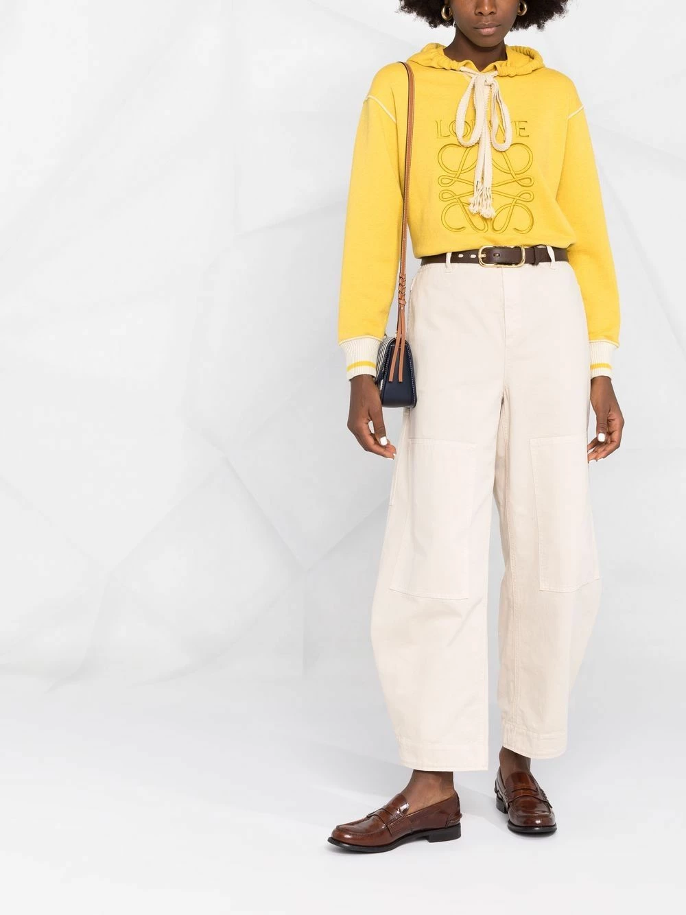 Coupe ample, fermeture dissimulée sur le devant, poches latérales fendues, coupe courte. Matière : coton.