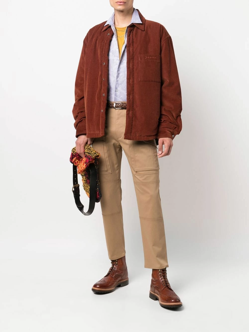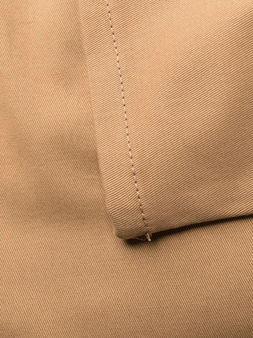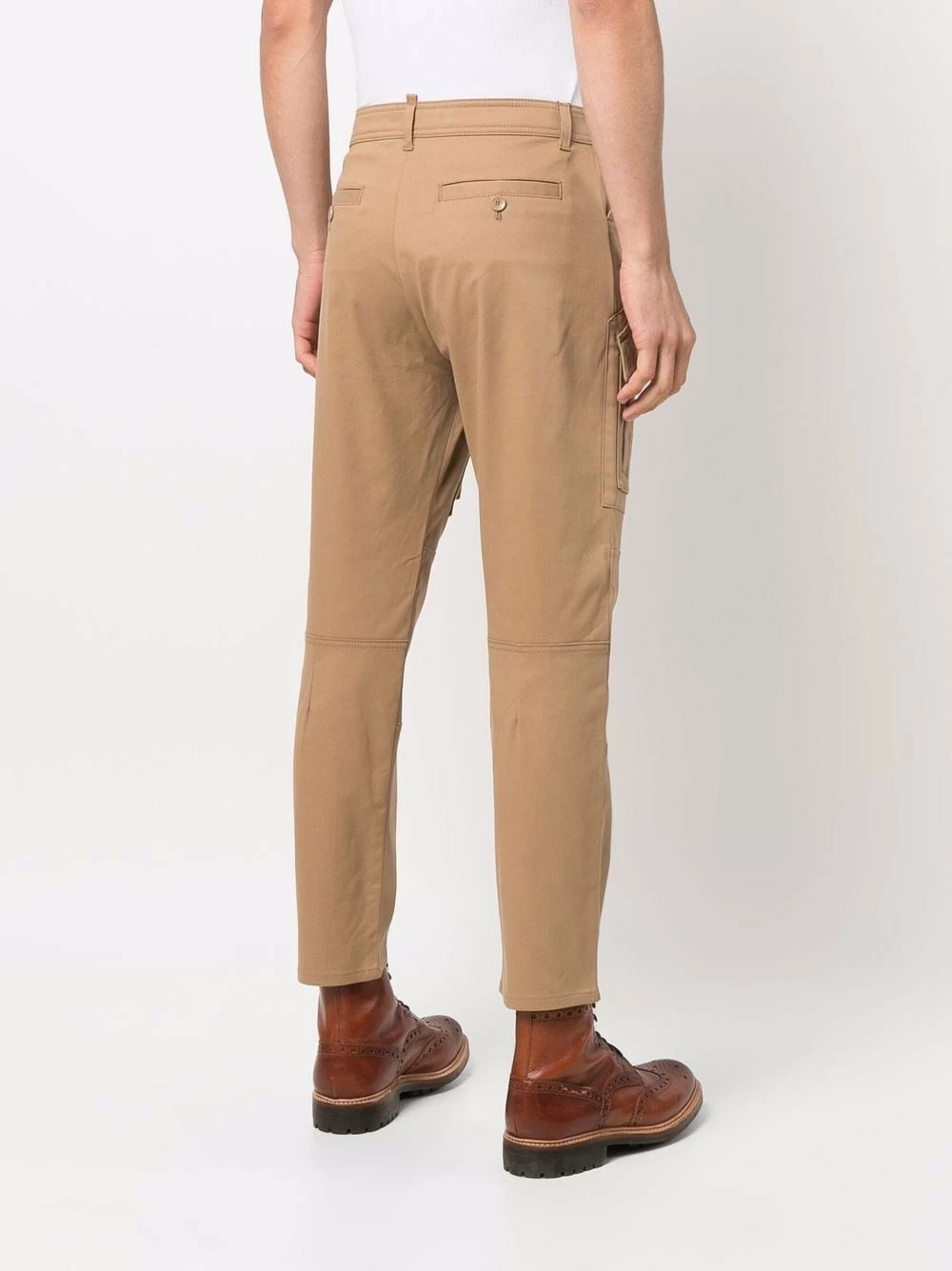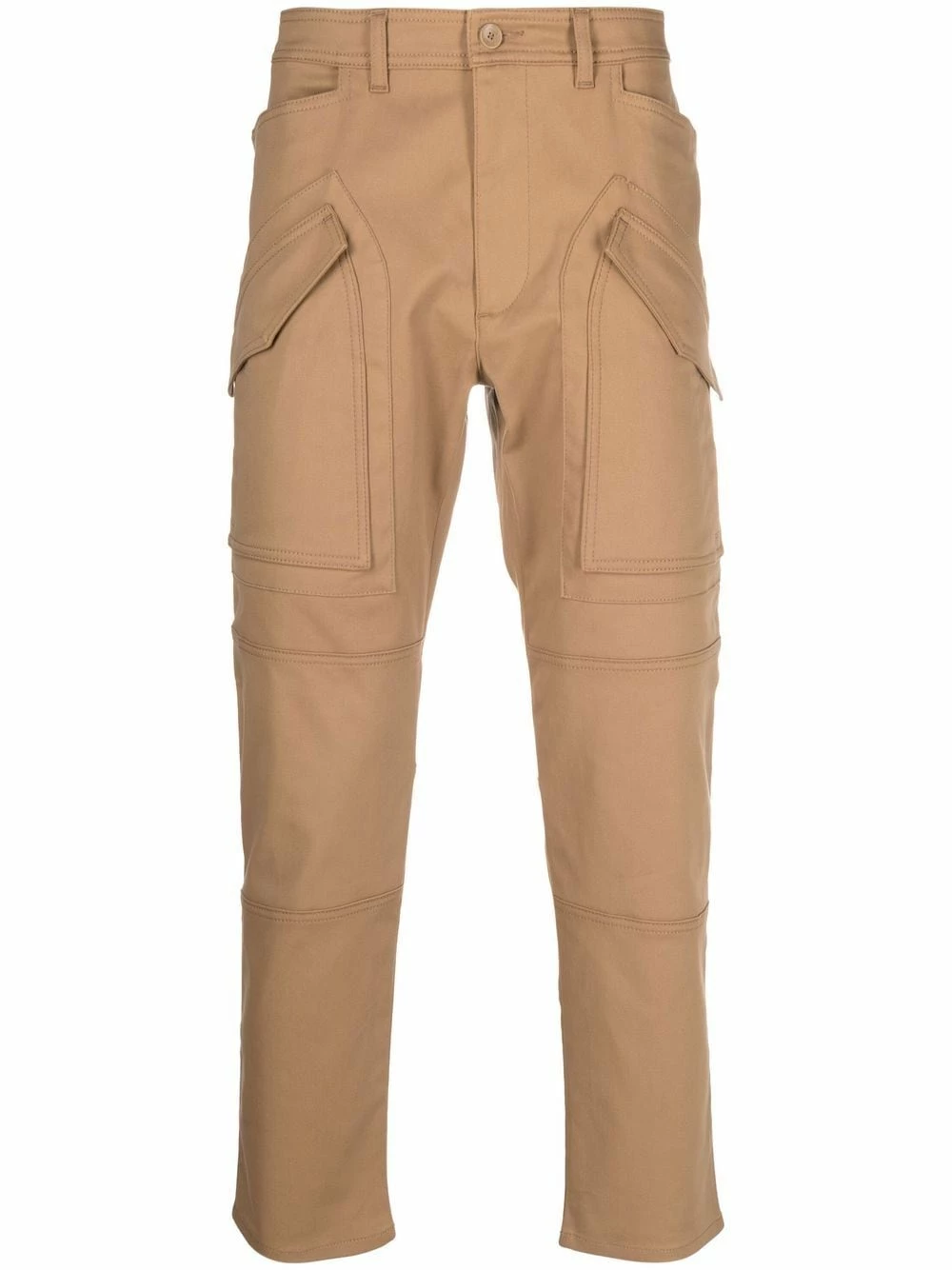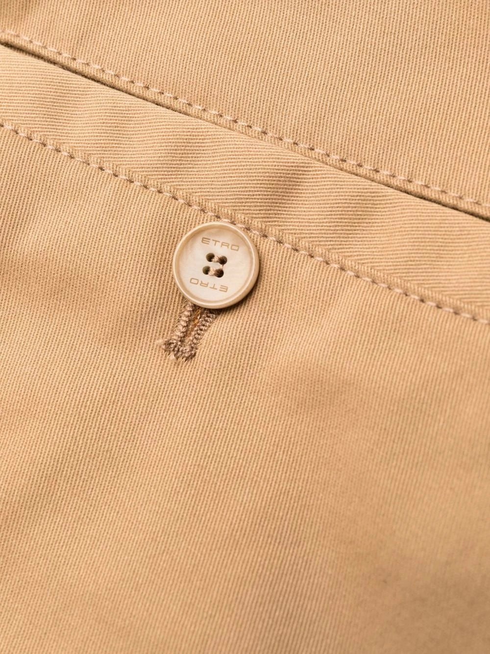 Coutures ton sur ton, taille mi-haute, passants de ceinture, fermeture à zip et boutons sur le devant, poches latérales fendues, poches latérales à rabat, poches arrière passepoilées, coupe slim, longueur crop.