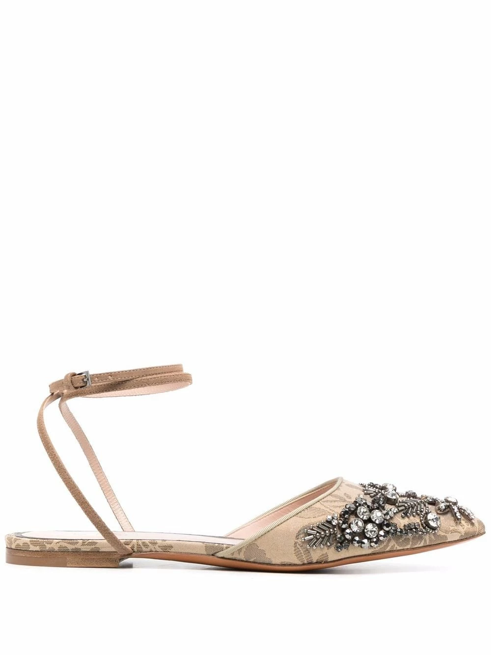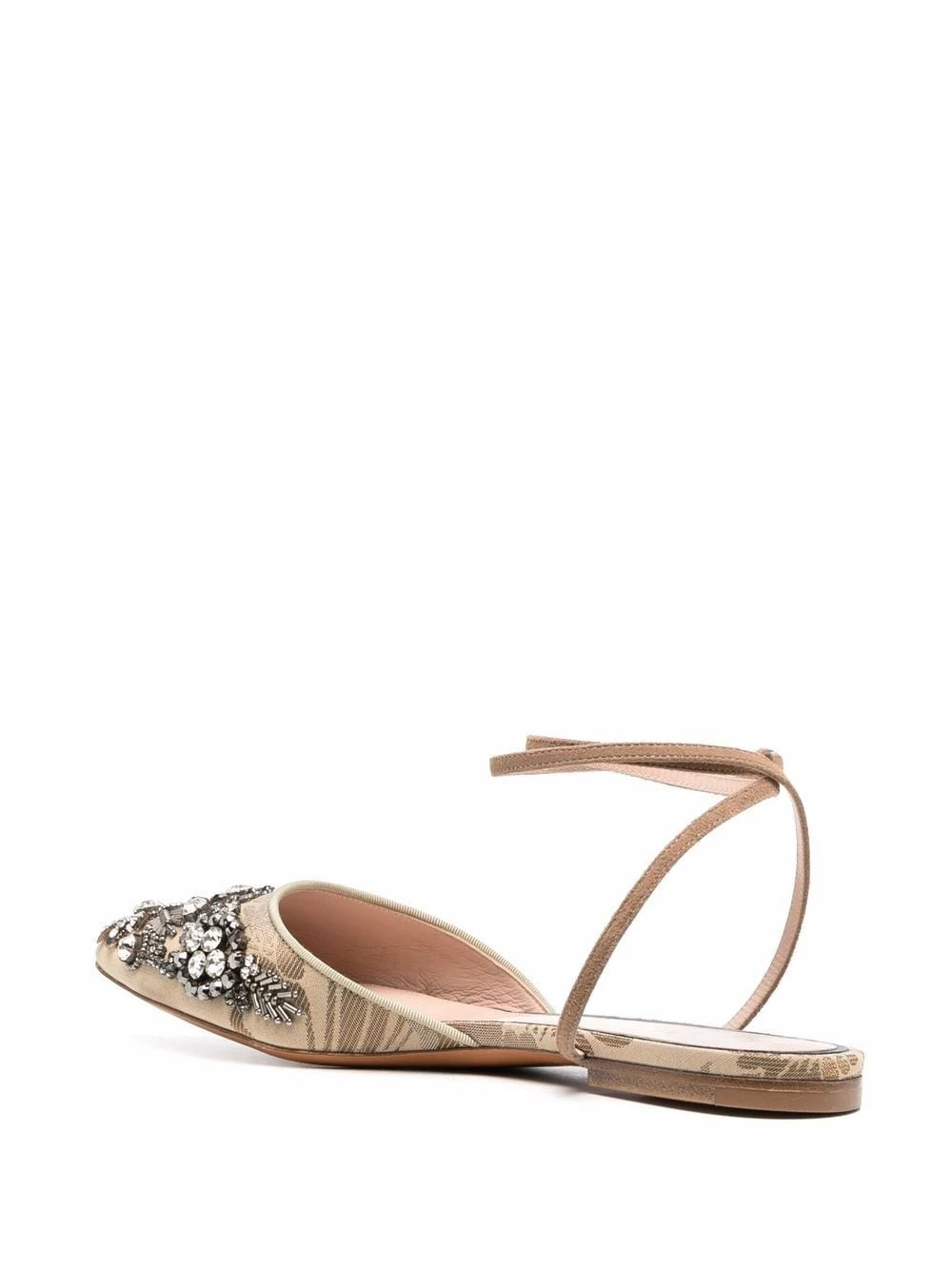 Ornements en perles brodées, ornement en cristal, bout pointu, bride cheville à boucle, semelle plate en caoutchouc.