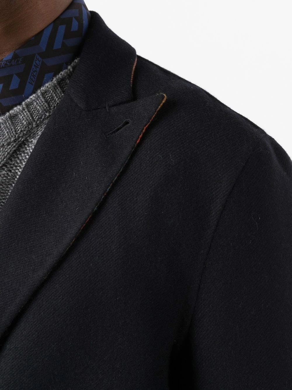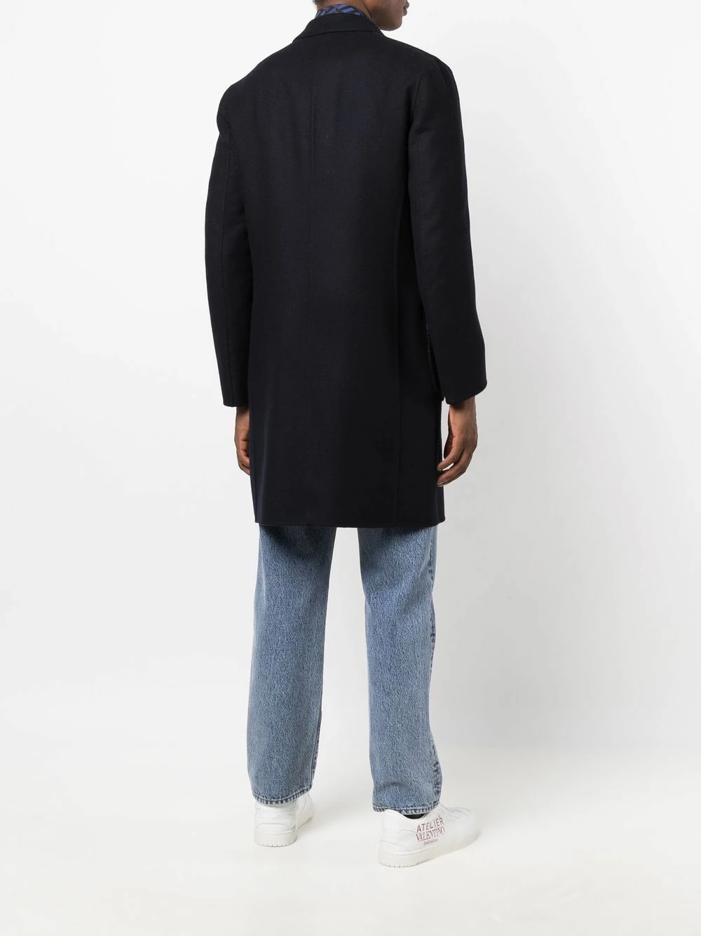 Imprimé à carreaux, design réversible, revers pointus, boutonnière sur le devant, manches longues, deux poches à rabat, coupe mi-longue, double fente arrière. Matière : laine.