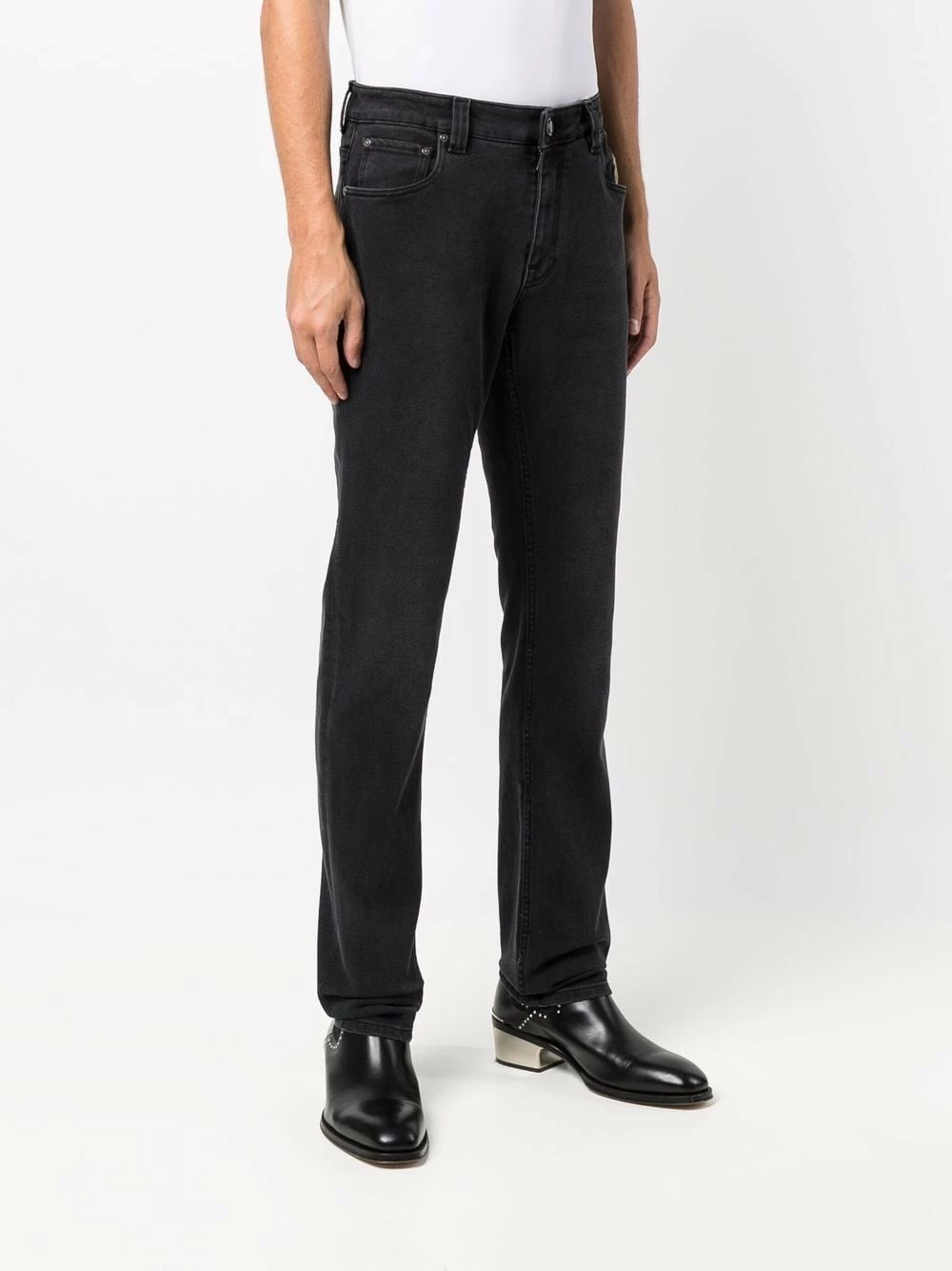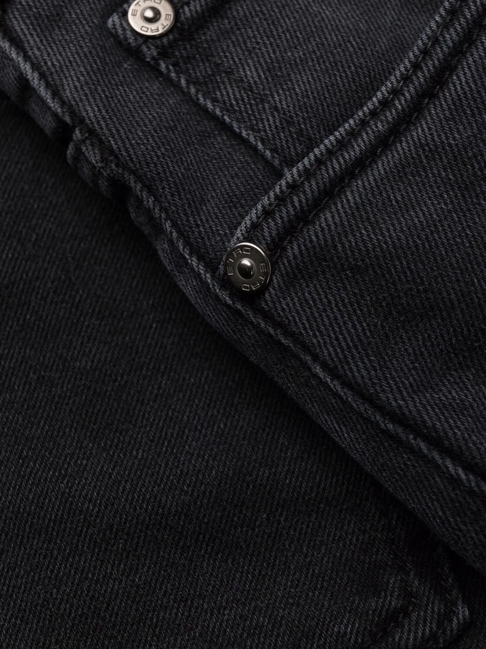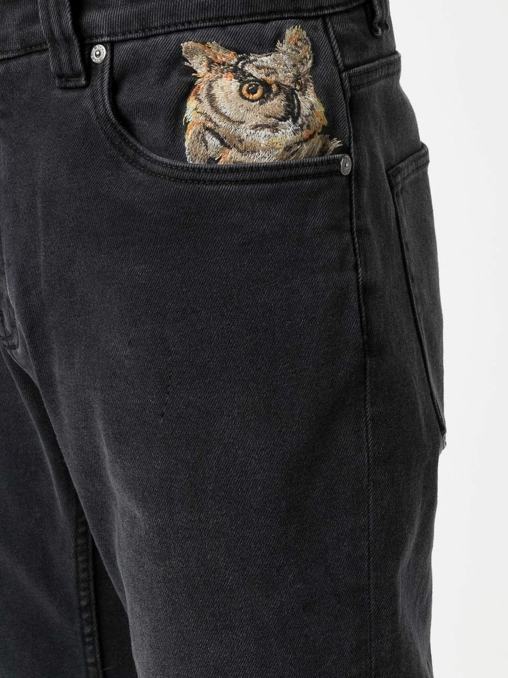 Broderies, taille mi-haute, coupe droite, fermeture à zip et boutons sur le devant, cinq poches classiques. Couleur : noir. Matière : coton mélangé.