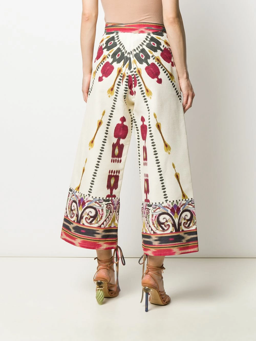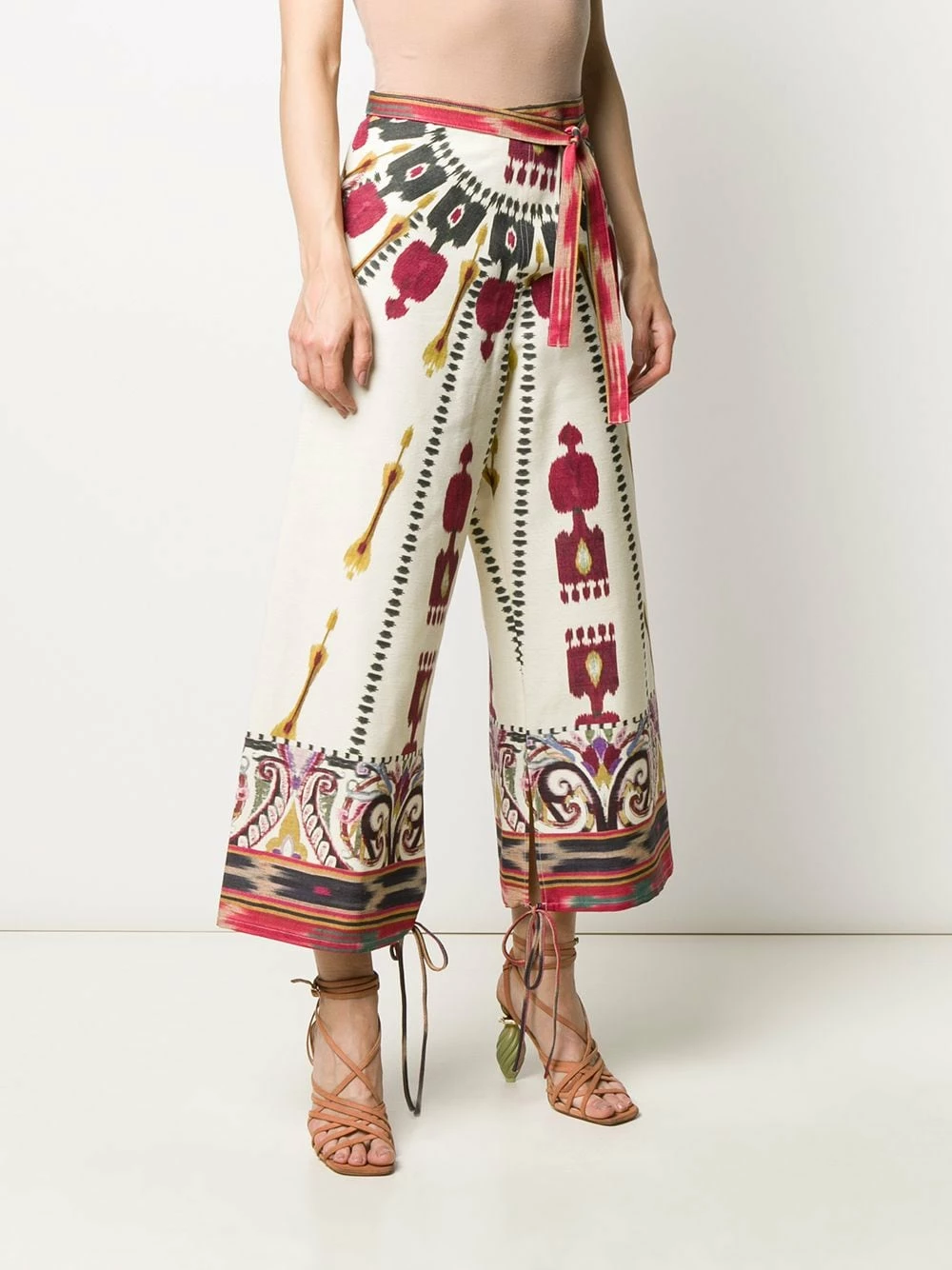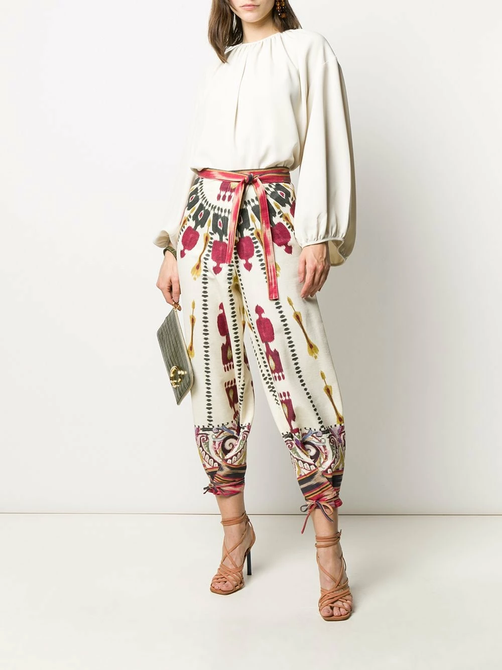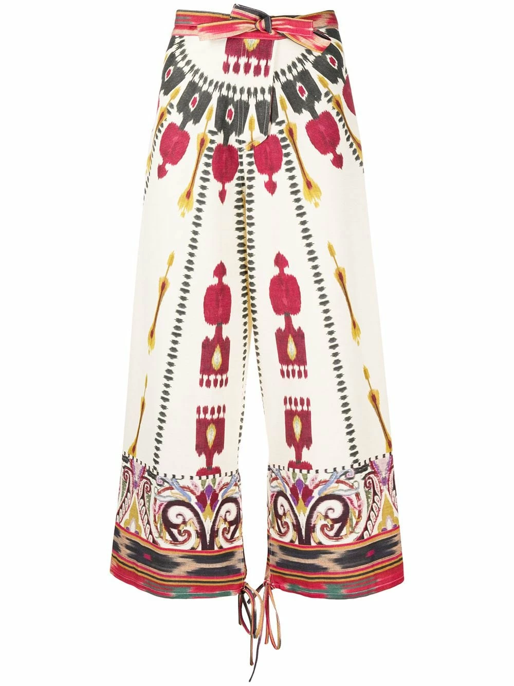 Pantalon imprimé à coupe ample en coton Etro avec ceinture nouée, taille marquée, poches latérales et longueur crop.