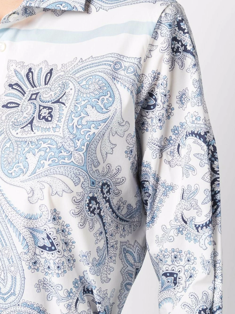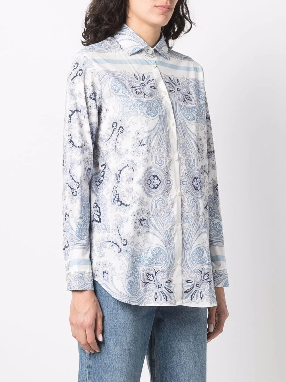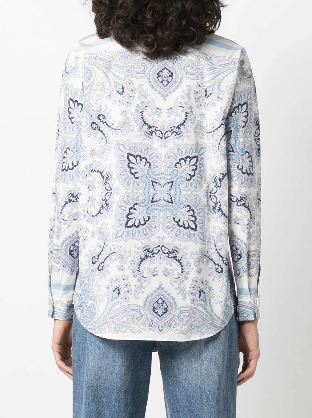 Motif cachemire, bords contrastants, boutonnière sur le devant, col italien, manches à poignets boutonnés, ourlet droit. Matière : coton mélangé.