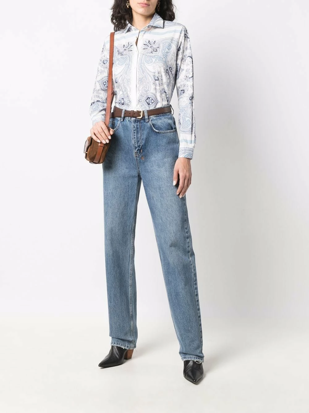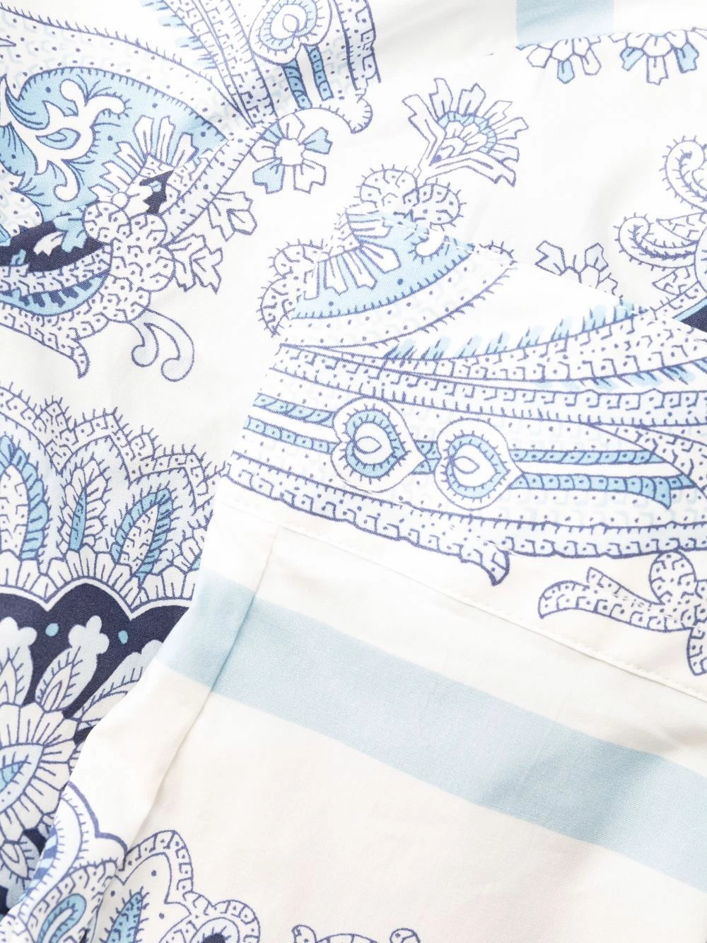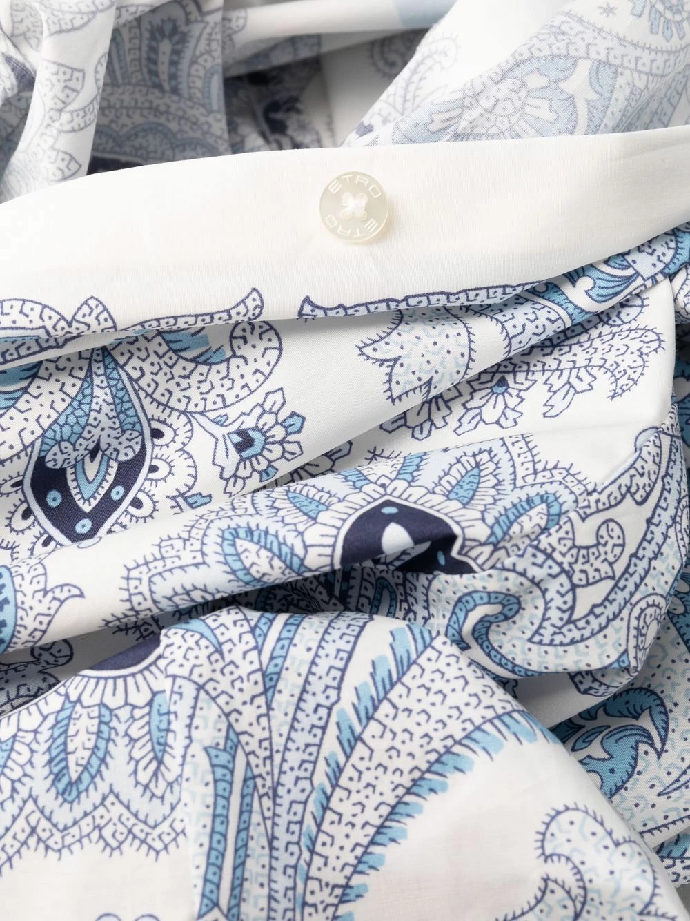 Motif cachemire, bords contrastants, boutonnière sur le devant, col italien, manches à poignets boutonnés, ourlet droit. Matière : coton mélangé.