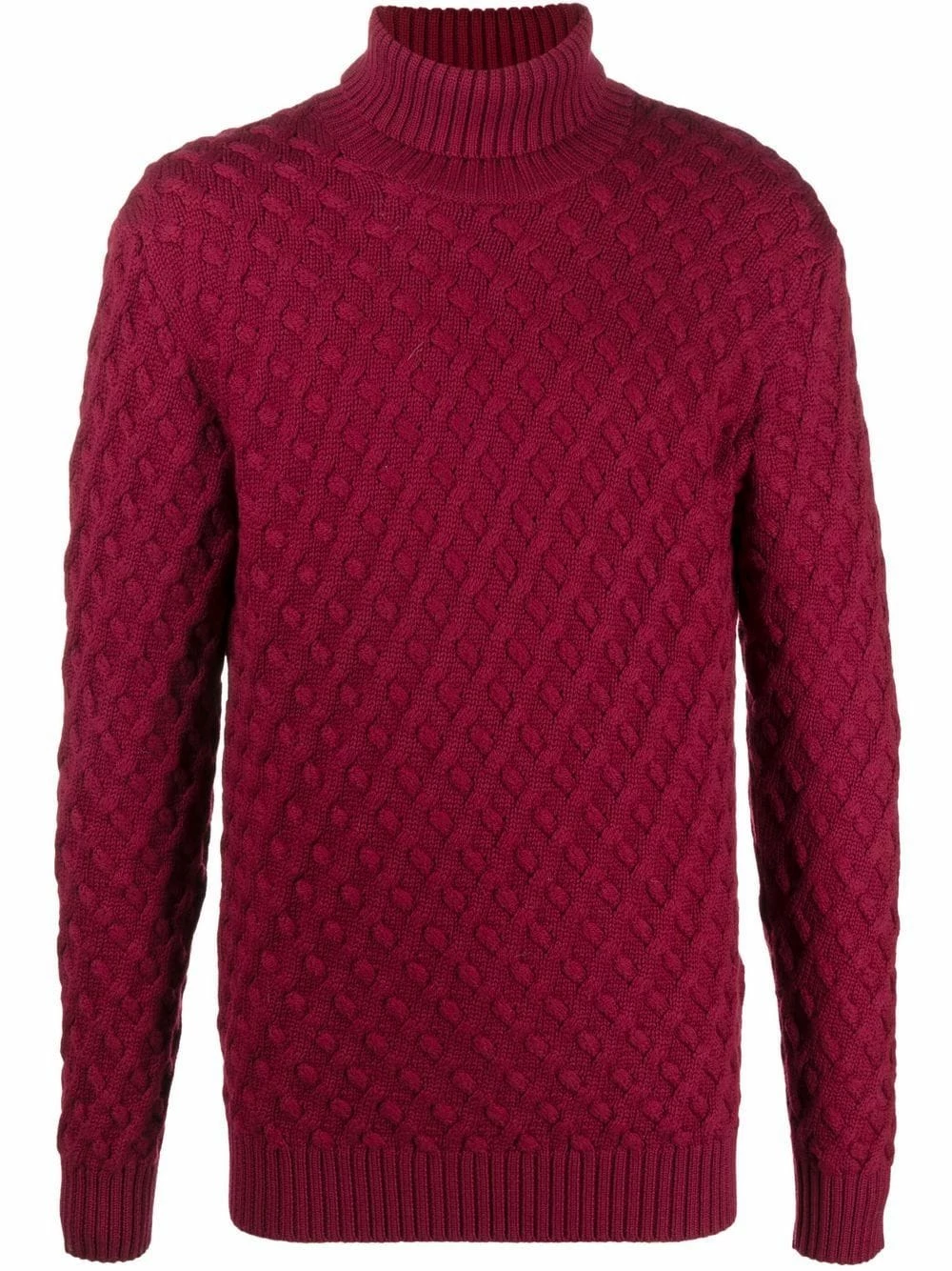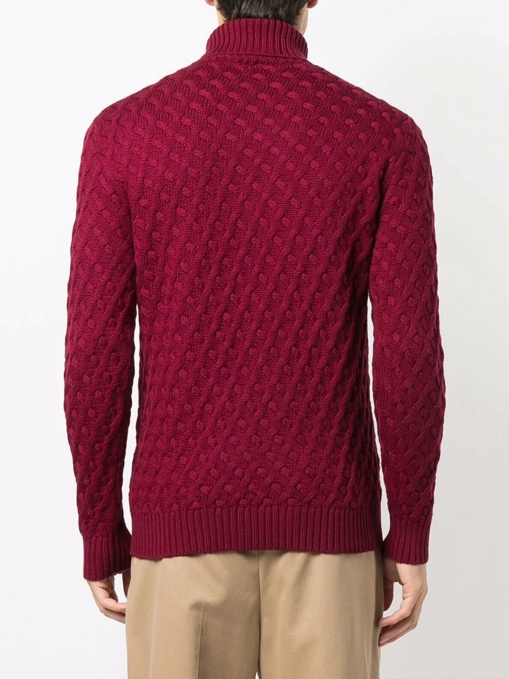 Détail nervuré, col roulé, manches longues, ourlet droit. Matière : laine.