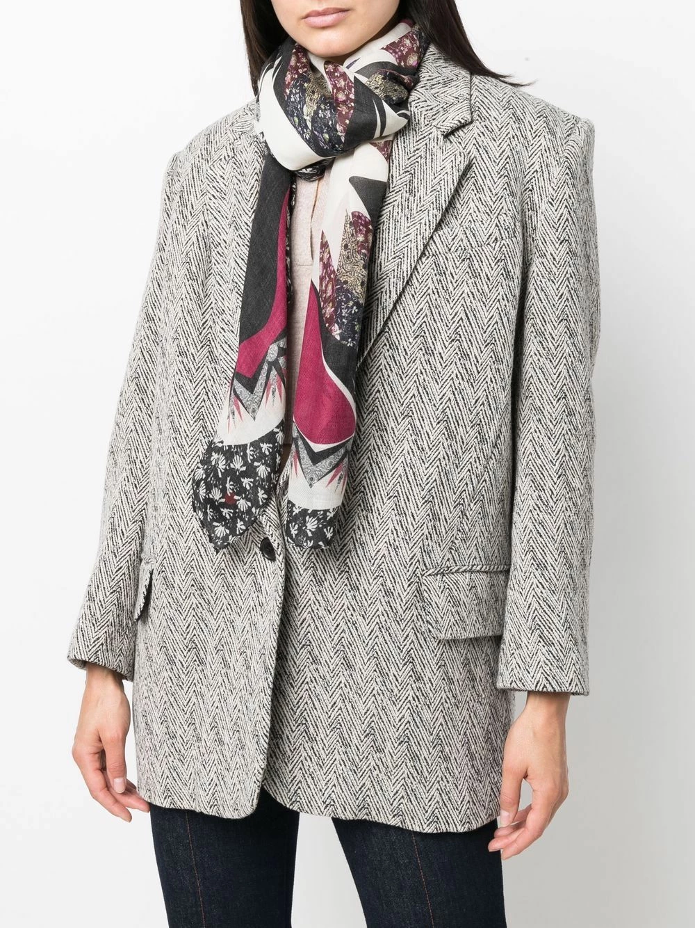 Maille fine, imprimé graphique intégral, ourlet droit. Matière : cachemire.