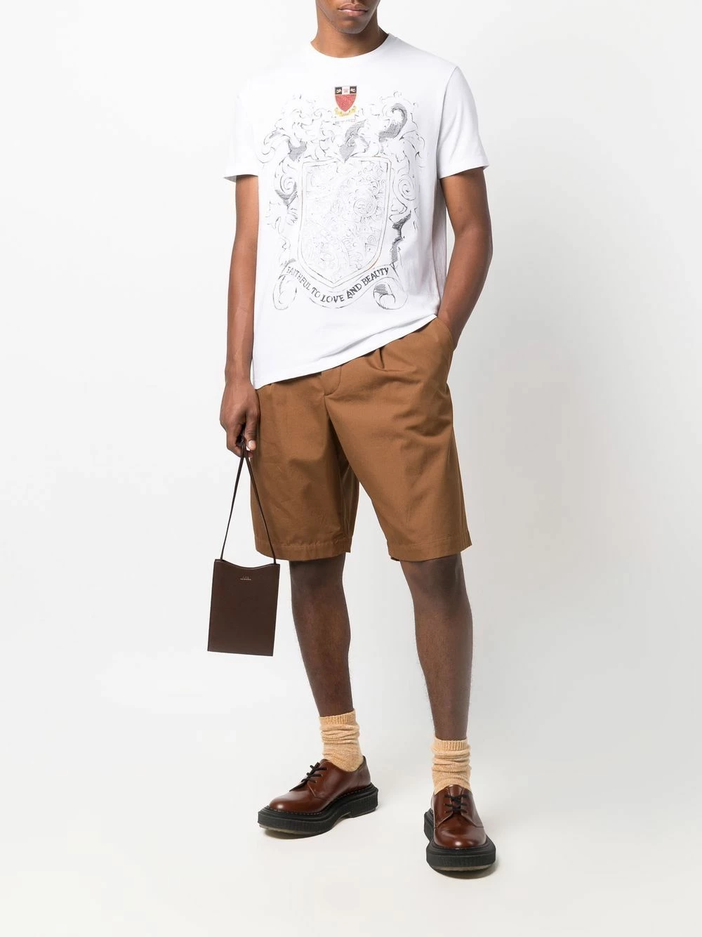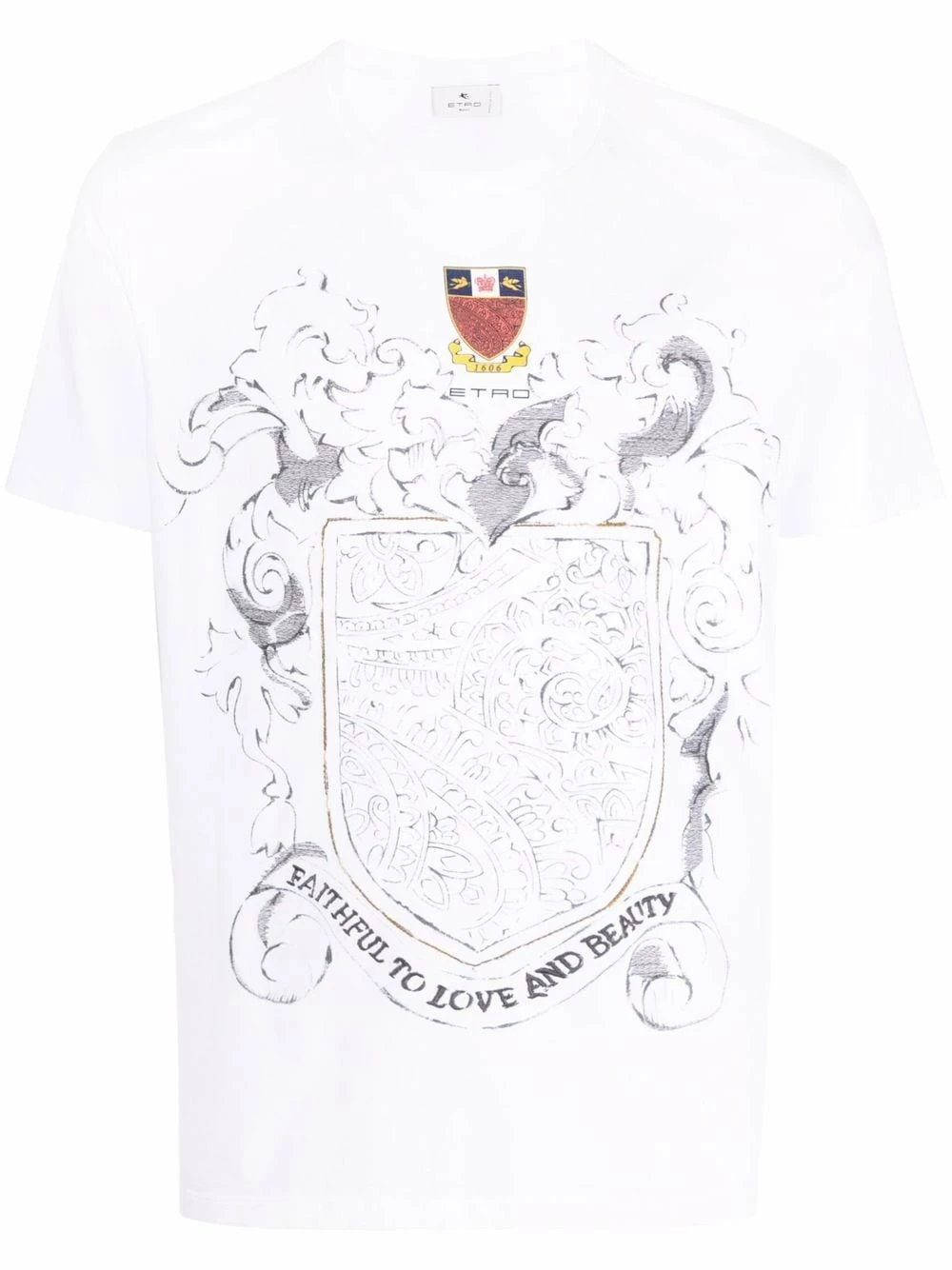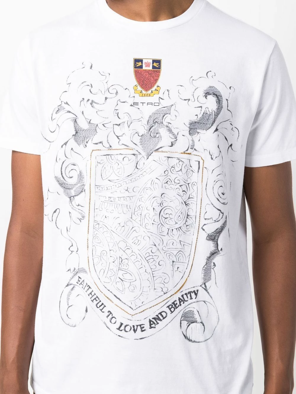 Tricot point jersey, slogan brodé, encolure ras du cou, manches courtes. Couleur : blanc. Matière : coton.