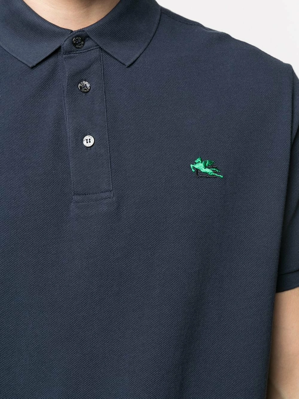 Logo brodée sur la poitrine, col polo, manches courtes. Matière : coton.