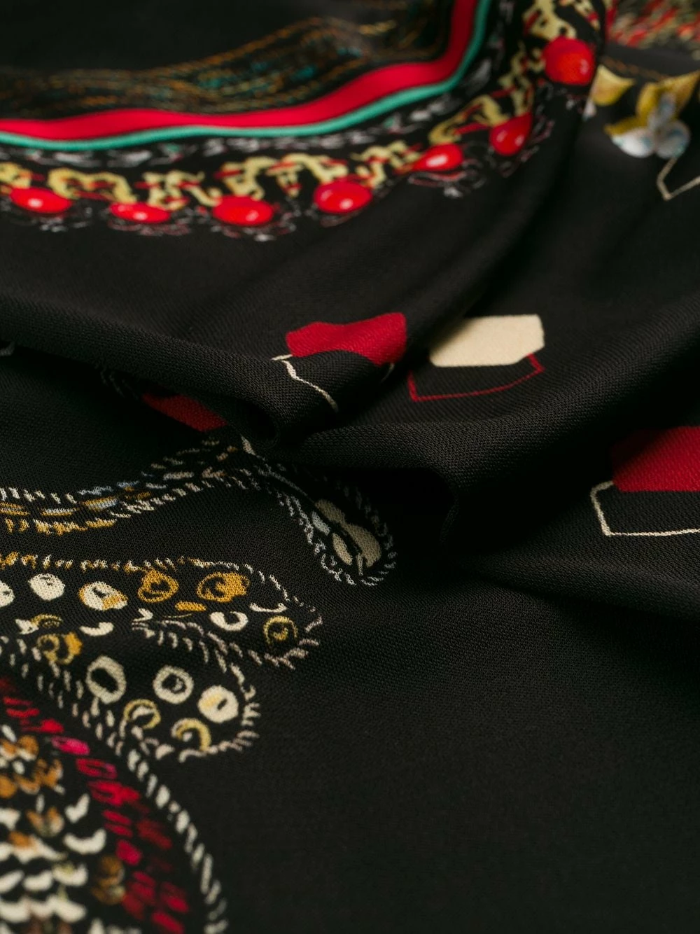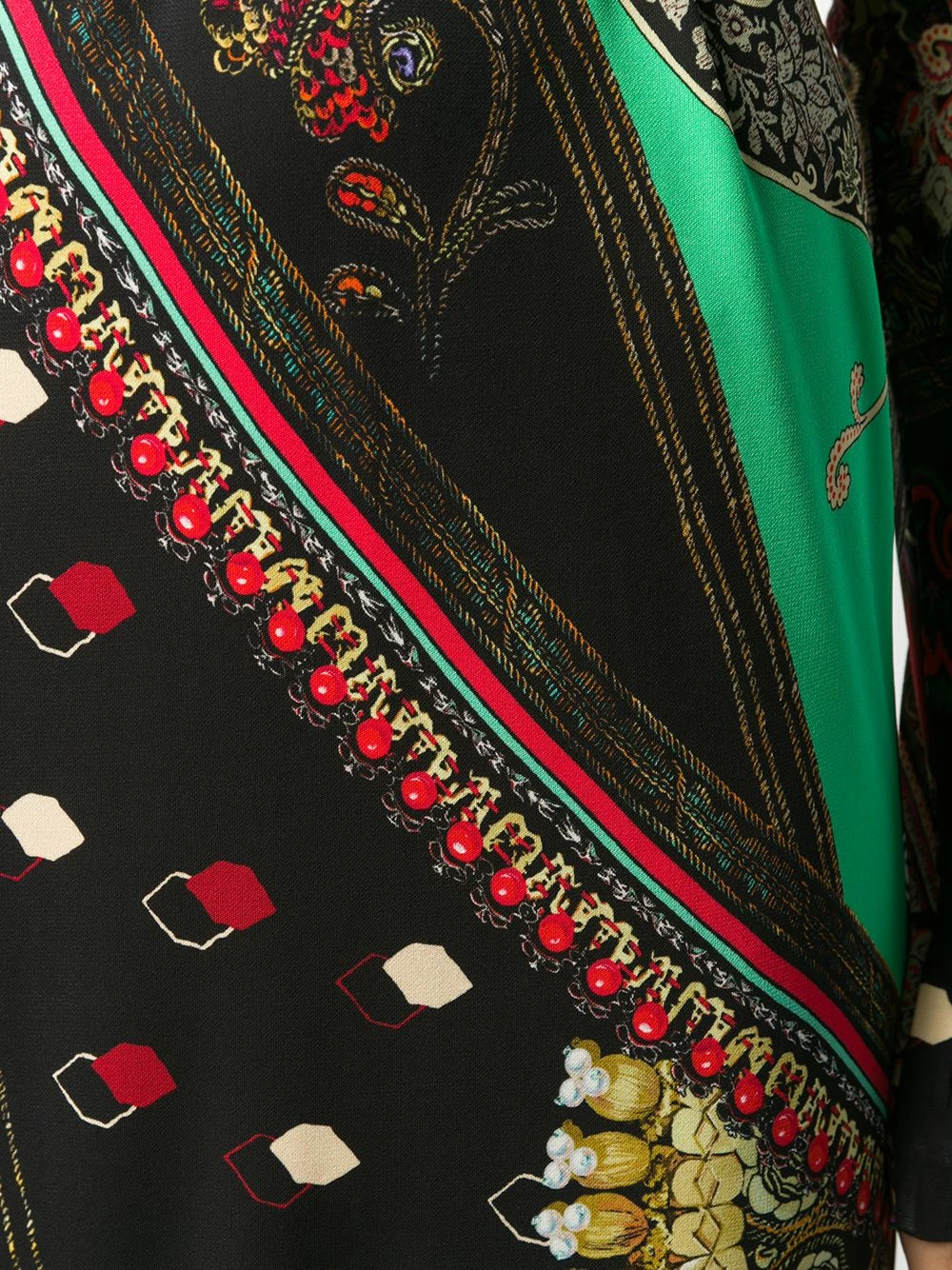Robe mi-longue à motif cachemire Etro avec col bateau, fermeture à nouer, manches longues, hauteur genou et ourlet droit.