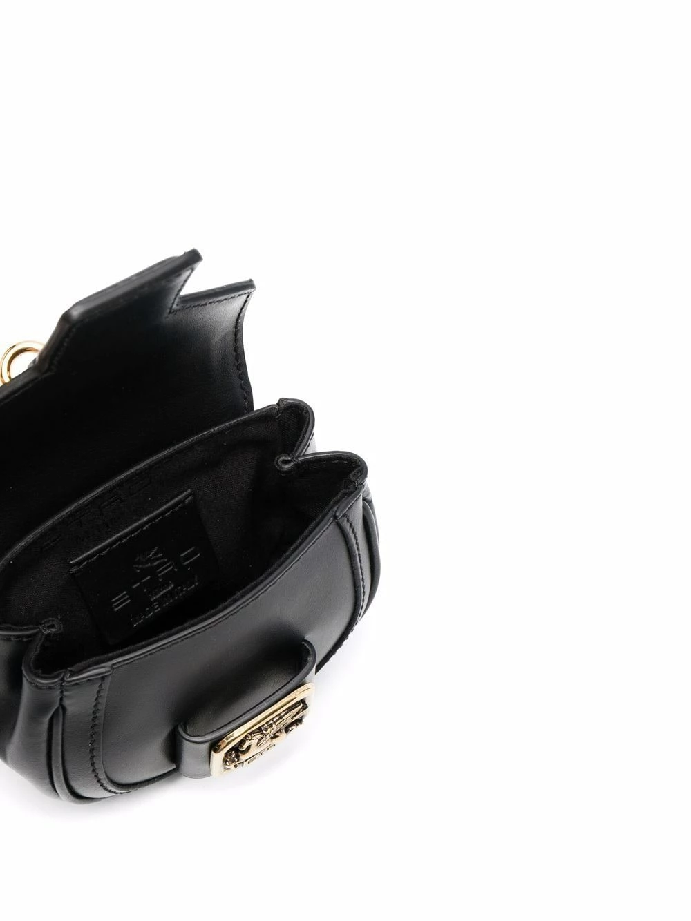 Plaque logo dorée, coutures ton sur ton, attache porte-clés, rabat sur le devant, patch logo intérieur. Couleur : noir. Matière : cuir.