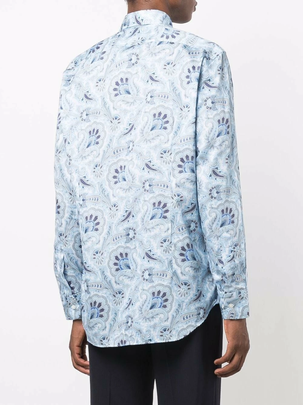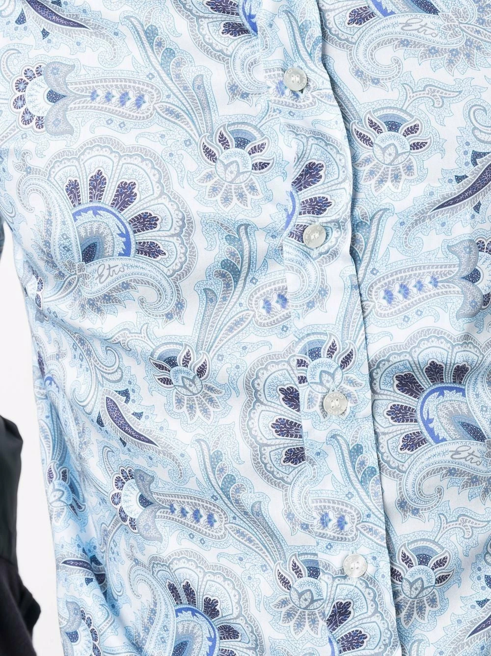 Motif cachemire, col classique, boutonnière sur le devant, manches longues, poignets boutonnés, ourlet incurvé.