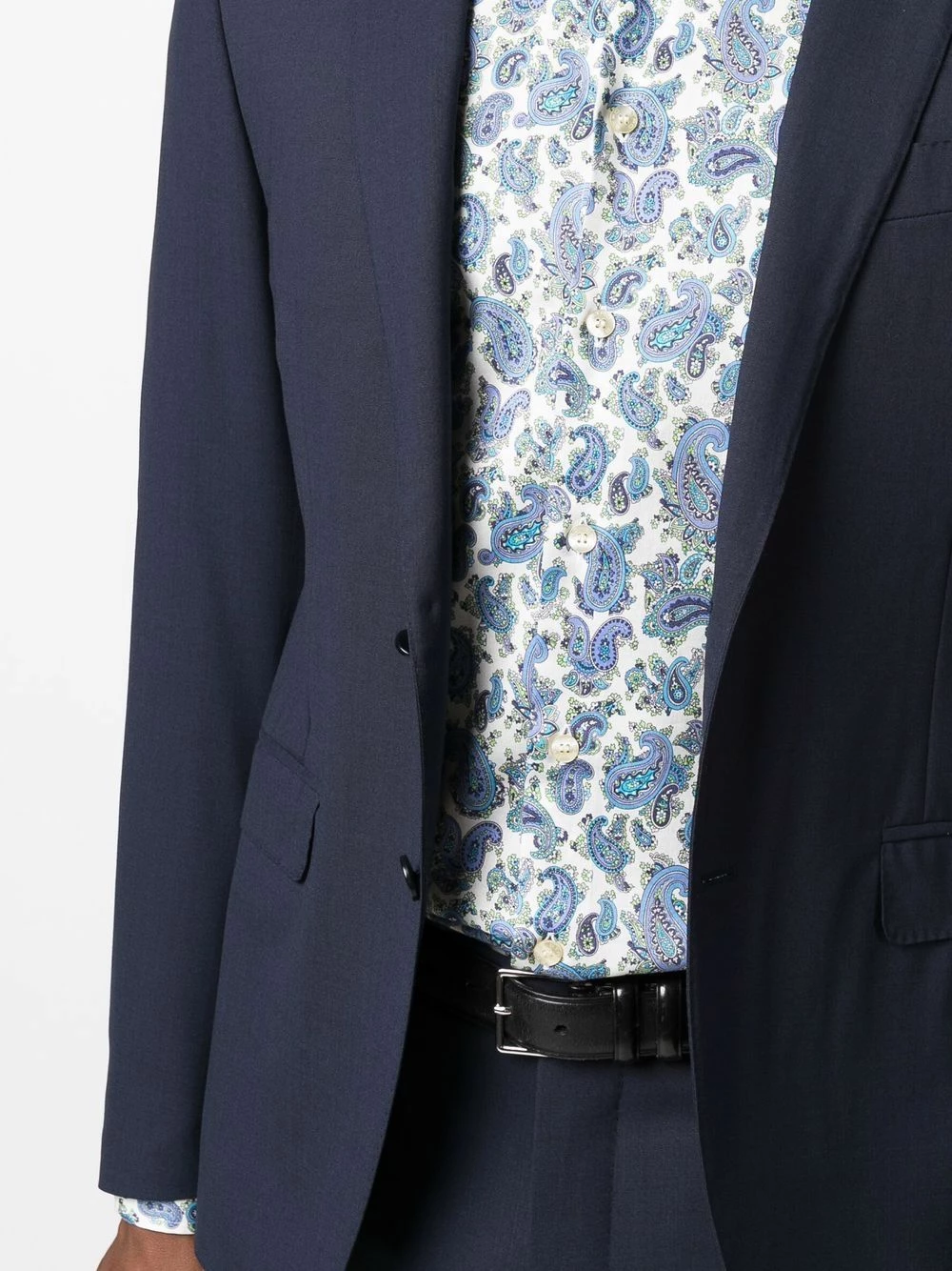 Col italien, motif cachemire, manches longues, boutonnière sur le devant, poignets boutonnés, ourlet incurvé. Matière : coton.