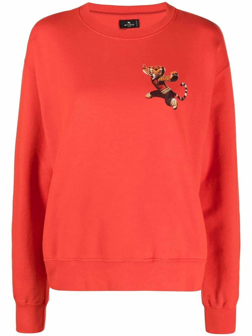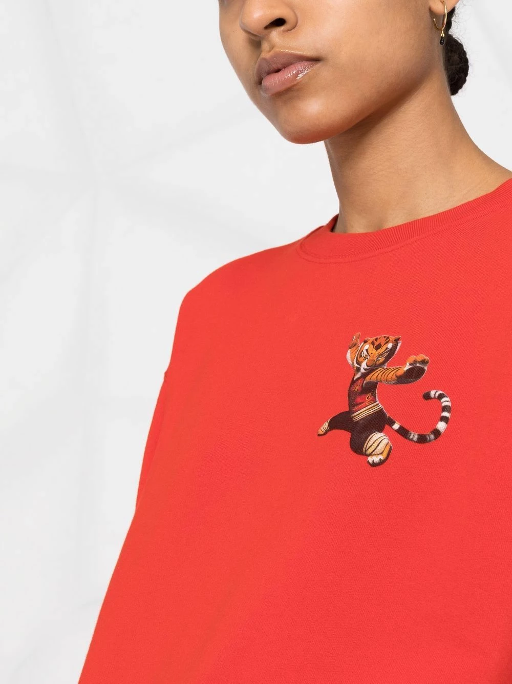 Imprimé graphique sur le buste, encolure ras du cou, manches longues, ourlet droit, finitions nervurées. Couleur : rouge. Matière : coton.