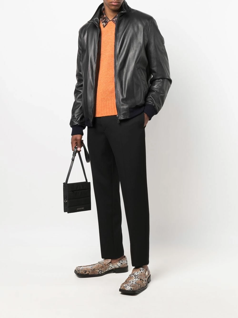 Col cheminée, fermeture zippée devant, manches longues, poignets élastiqués.