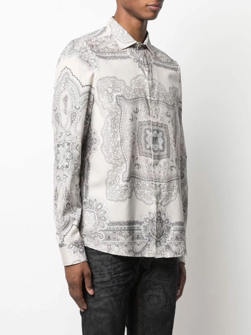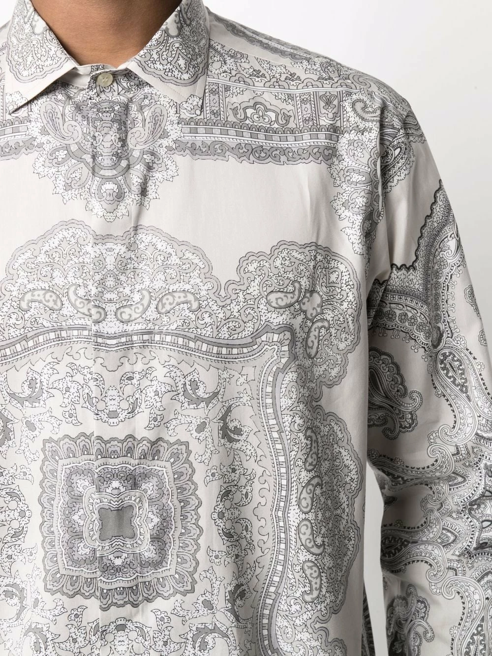 Col classique, boutonnière dissimulée sur le devant, ourlet incurvé, manches à poignets boutonnés. Couleur : gris. Matière : coton.