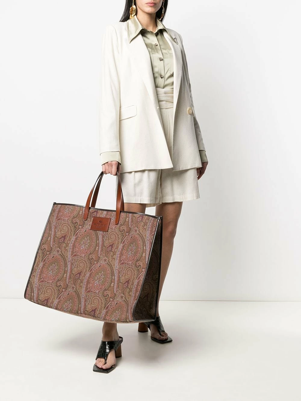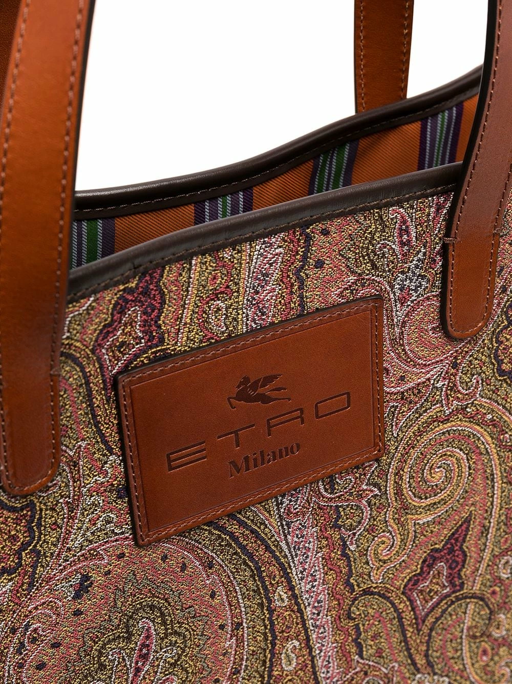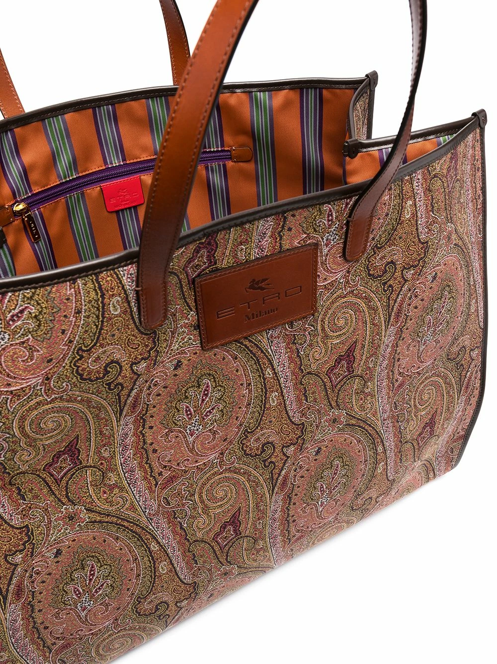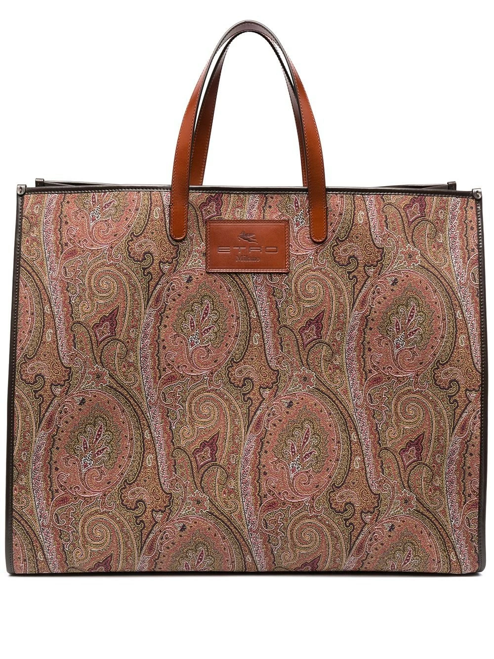 Motif cachemire, patch logo sur le devant, anses sur le dessus, ouverture sur le dessus, compartiment principal, poches intérieures zippées, patch logo intérieur.