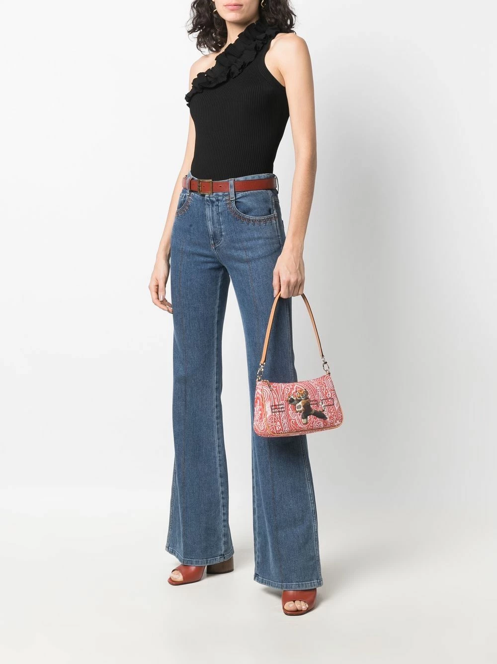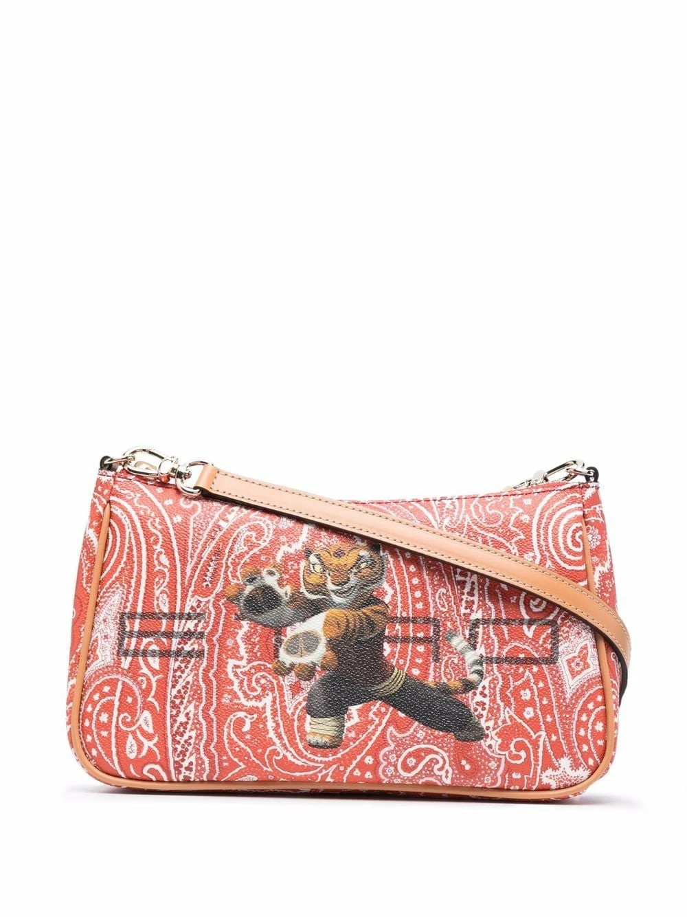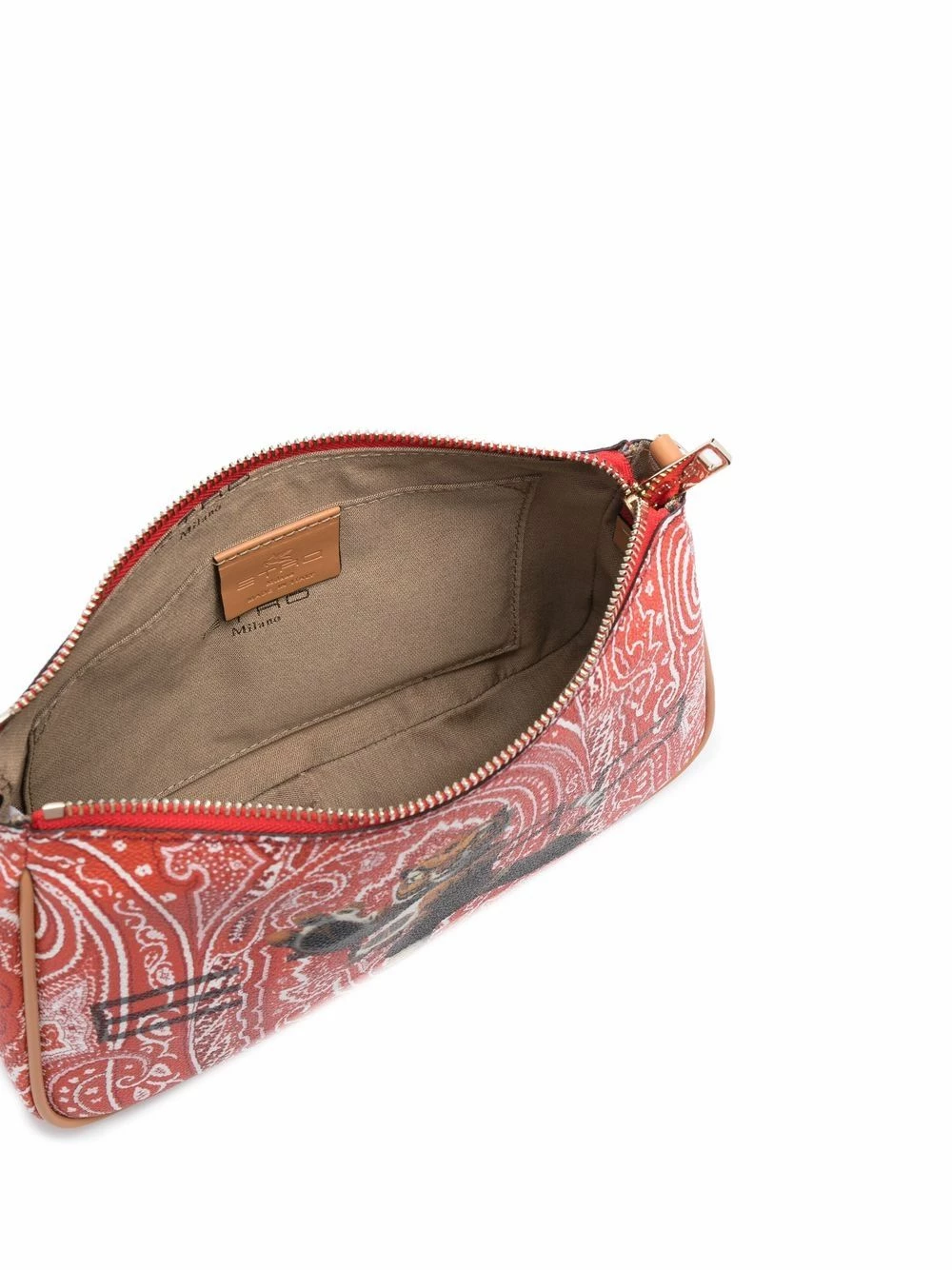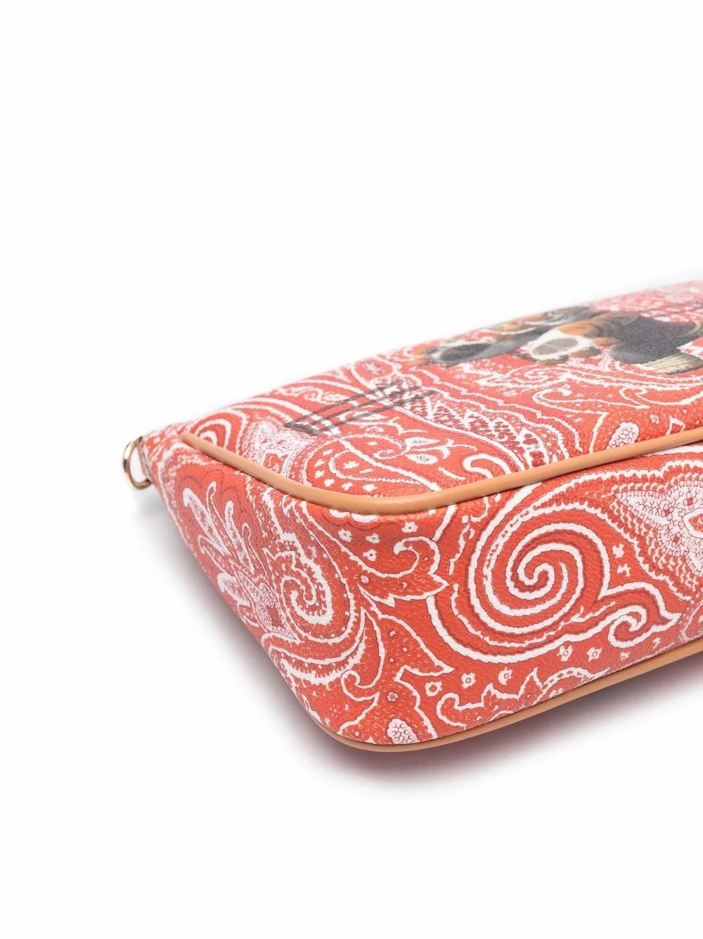 Logo lettre, motif cachemire, fermeture zippée sur le dessus, imprimé graphique, anse classique, patch logo intérieur. Couleur : rouge. Matière : cuir de veau.