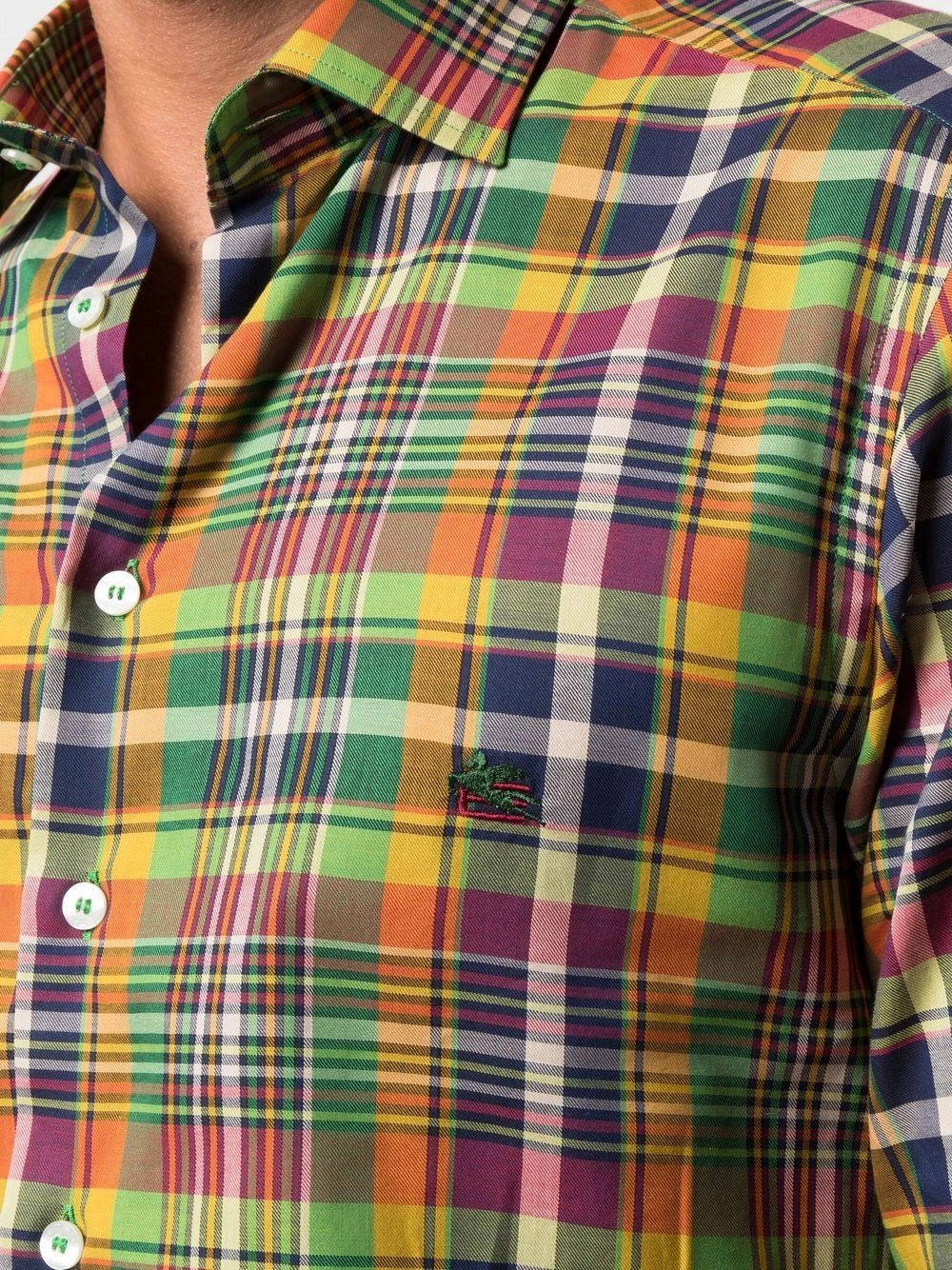 Motif tartan, col classique, boutonnière sur le devant, manches longues, poignets boutonnés, ourlet incurvé. Couleur : multicolore. Matière : coton.
