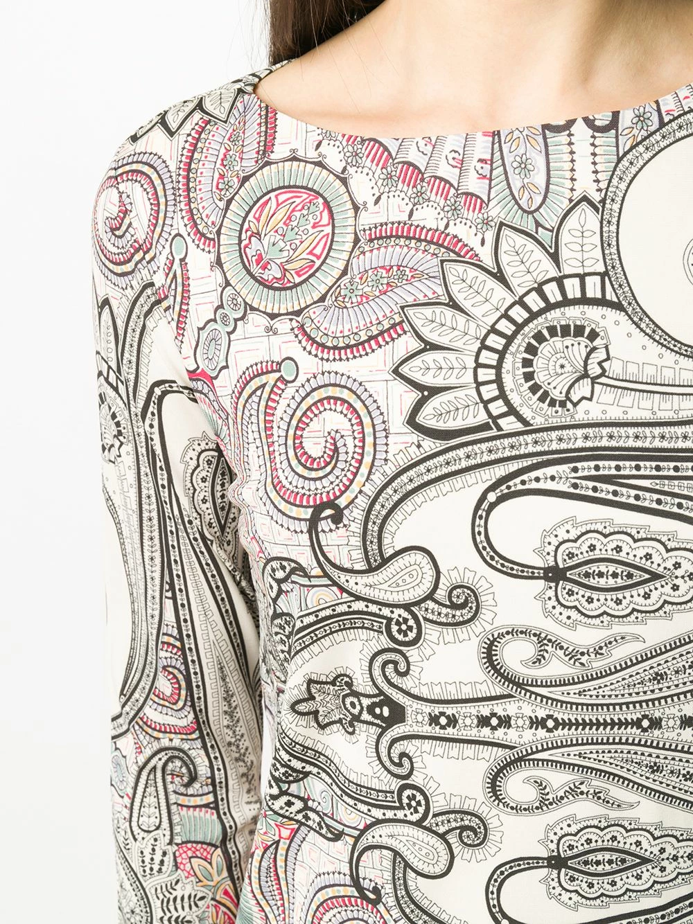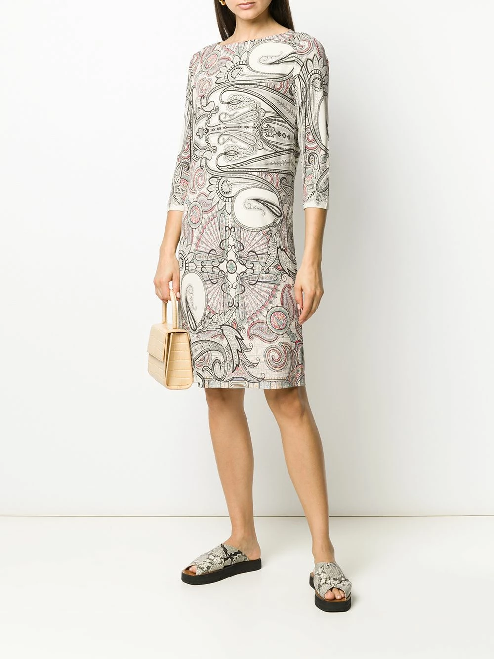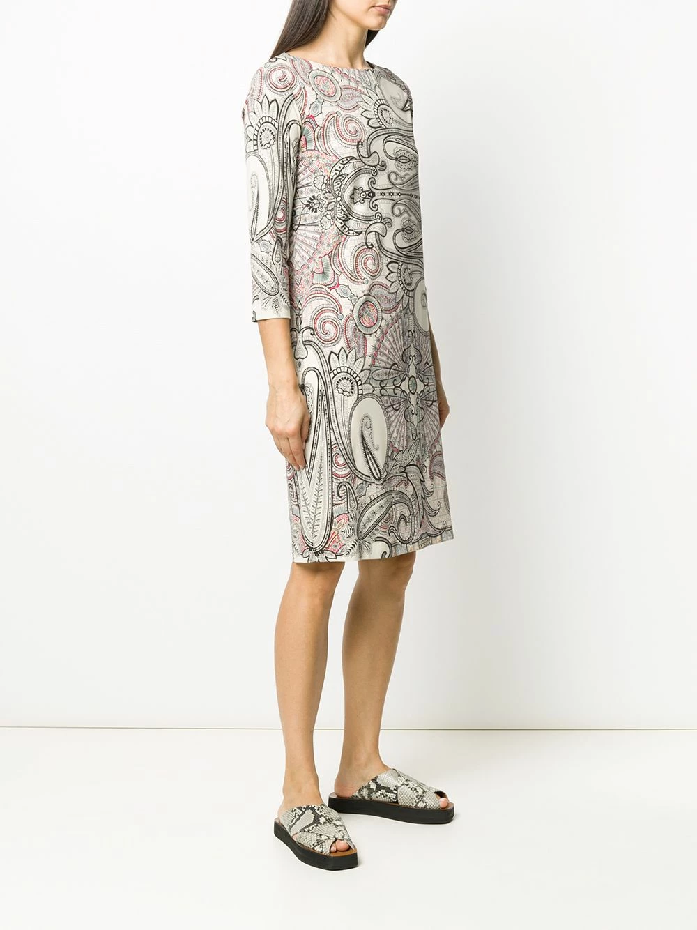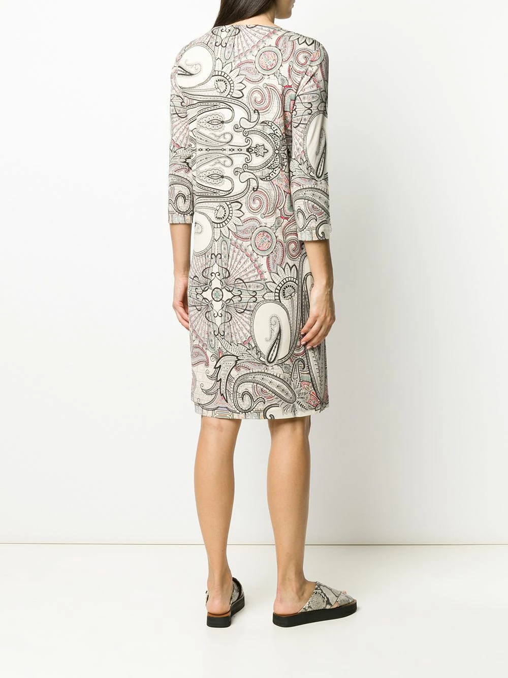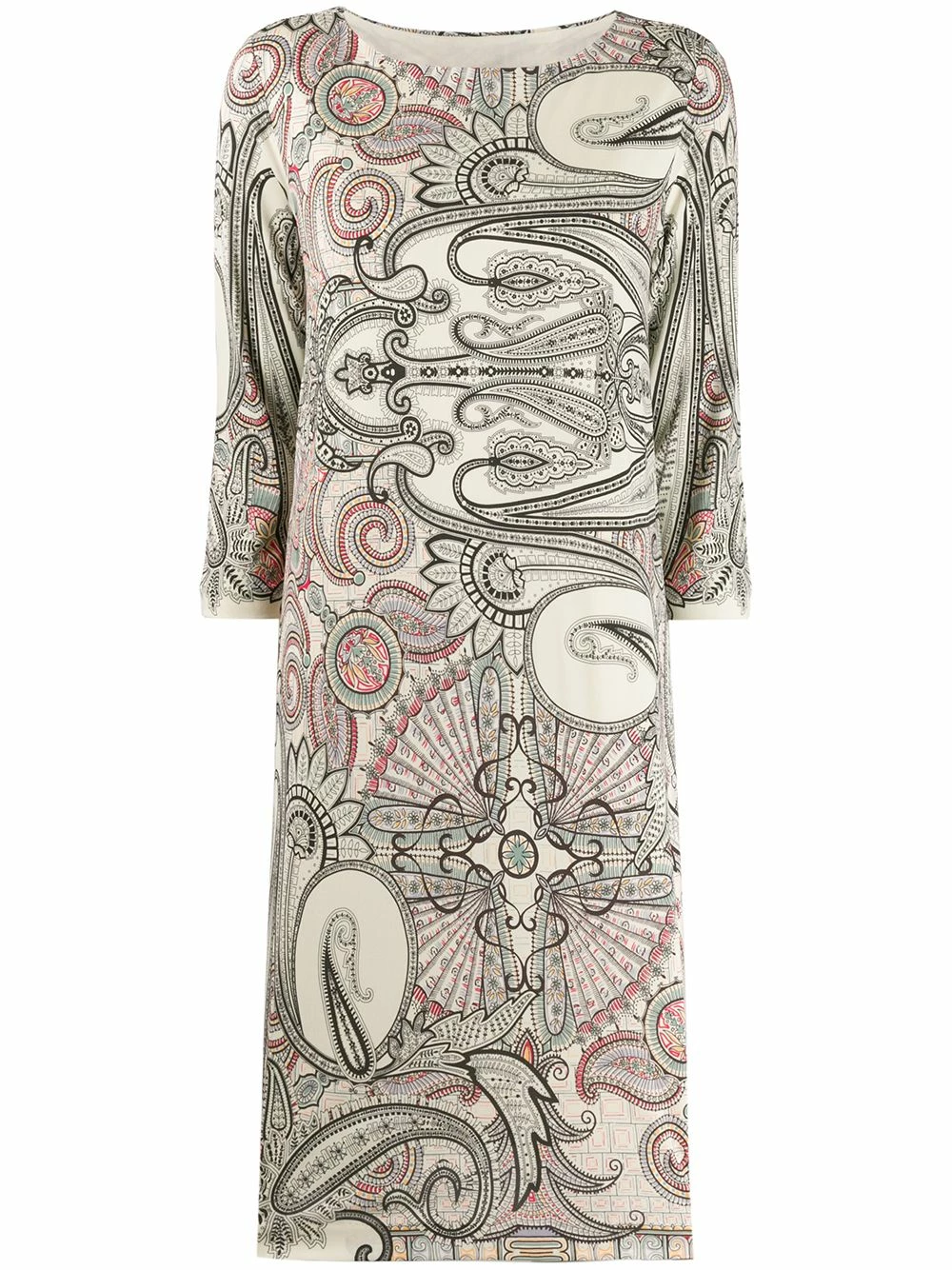 Robe à imprimé abstrait Etro avec encolure bateau, manches trois quarts, coupe midi et imprimé abstrait.