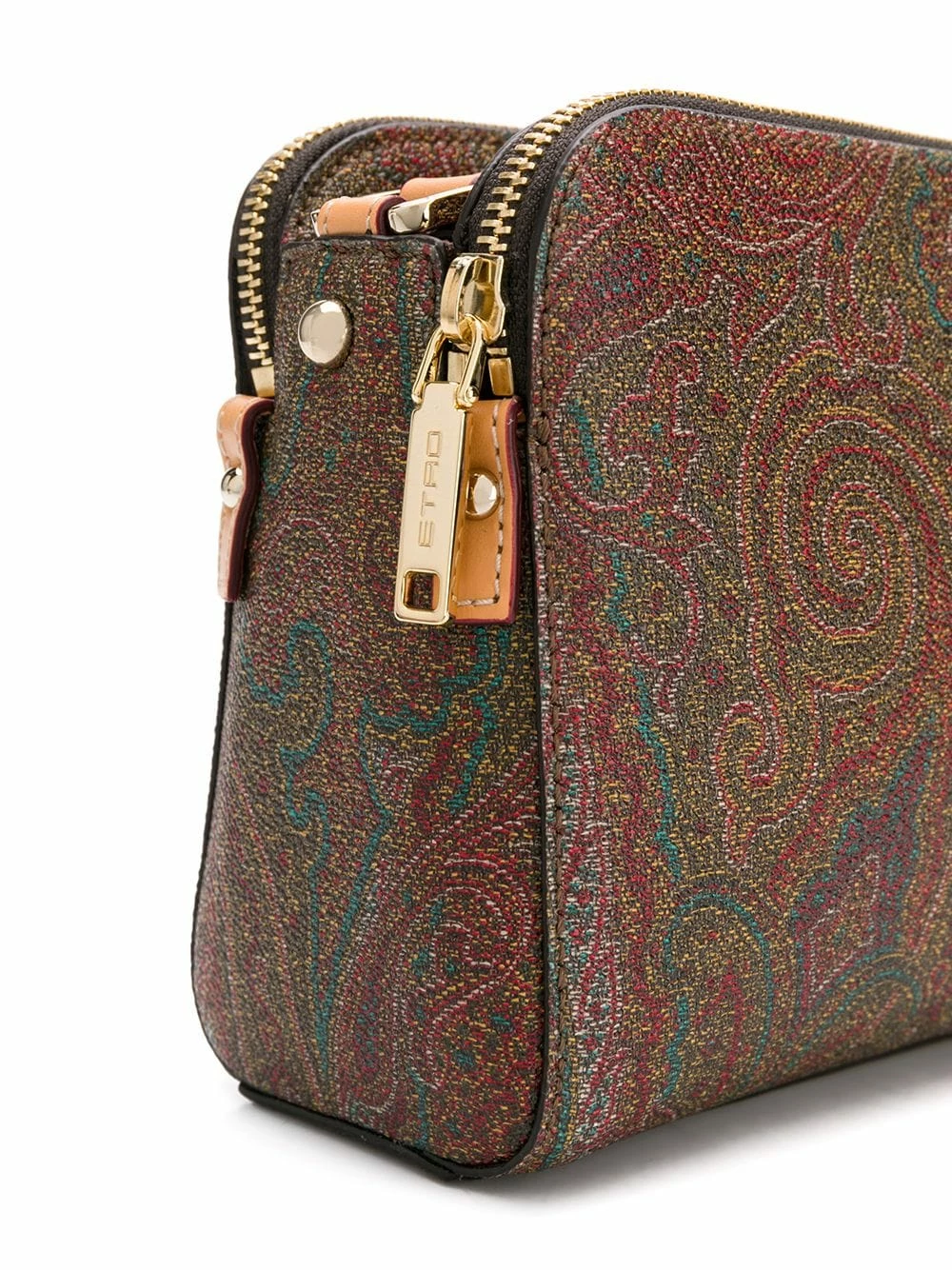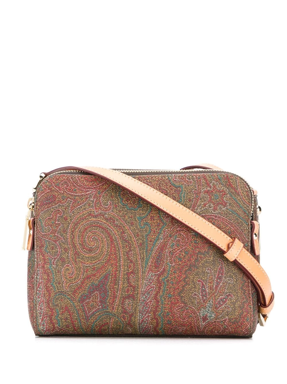 Sac à bandoulière à motif cachemire Etro avec a double top zip closure, intérieur à soufflets, patch logo intérieur, forme rectangulaire, design structuré et bride portée épaule ajustable. Couleur : marron.