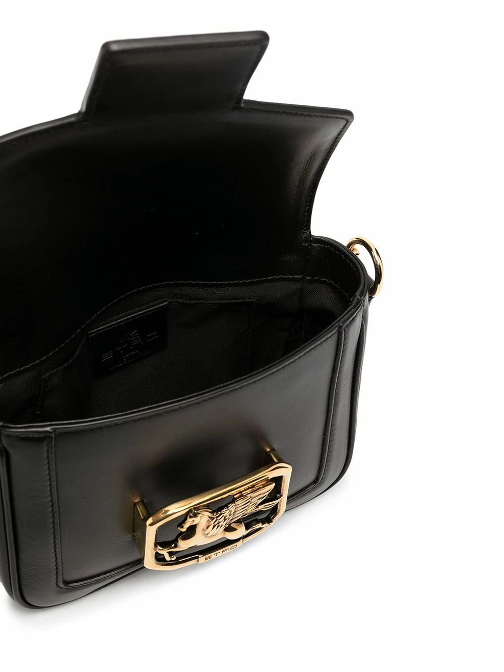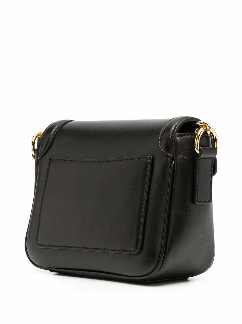 Finitions en métal doré, plaque logo, rabat sur le dessus, compartiment principal, bride portée épaule en cuir et maillons de chaîne. Couleur : noir. Matière : cuir de veau.
