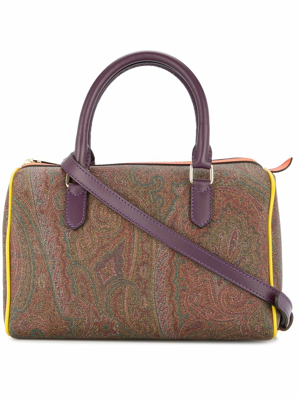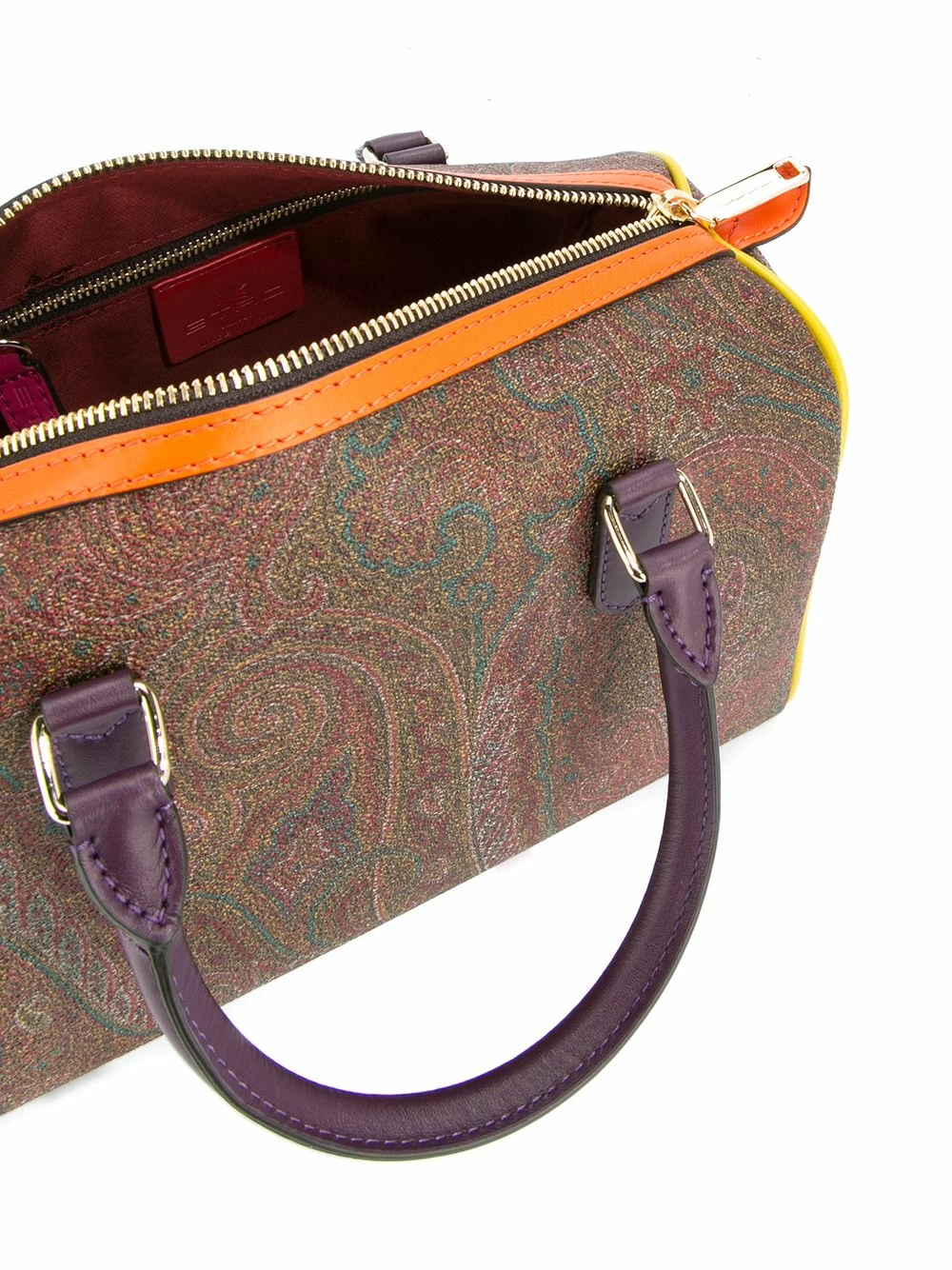 Sac à main à motif cachemire en cuir multicolore Etro avec anses sur le dessus, fermeture zippée sur le dessus, poche intérieure zippée et design colour block.