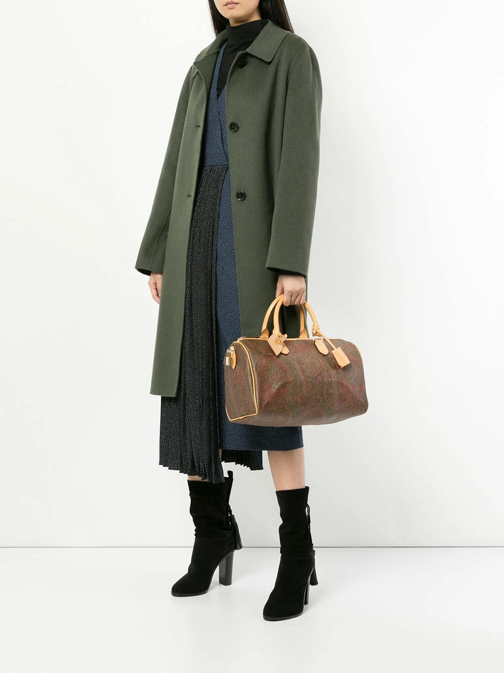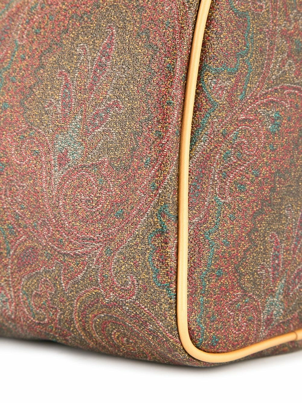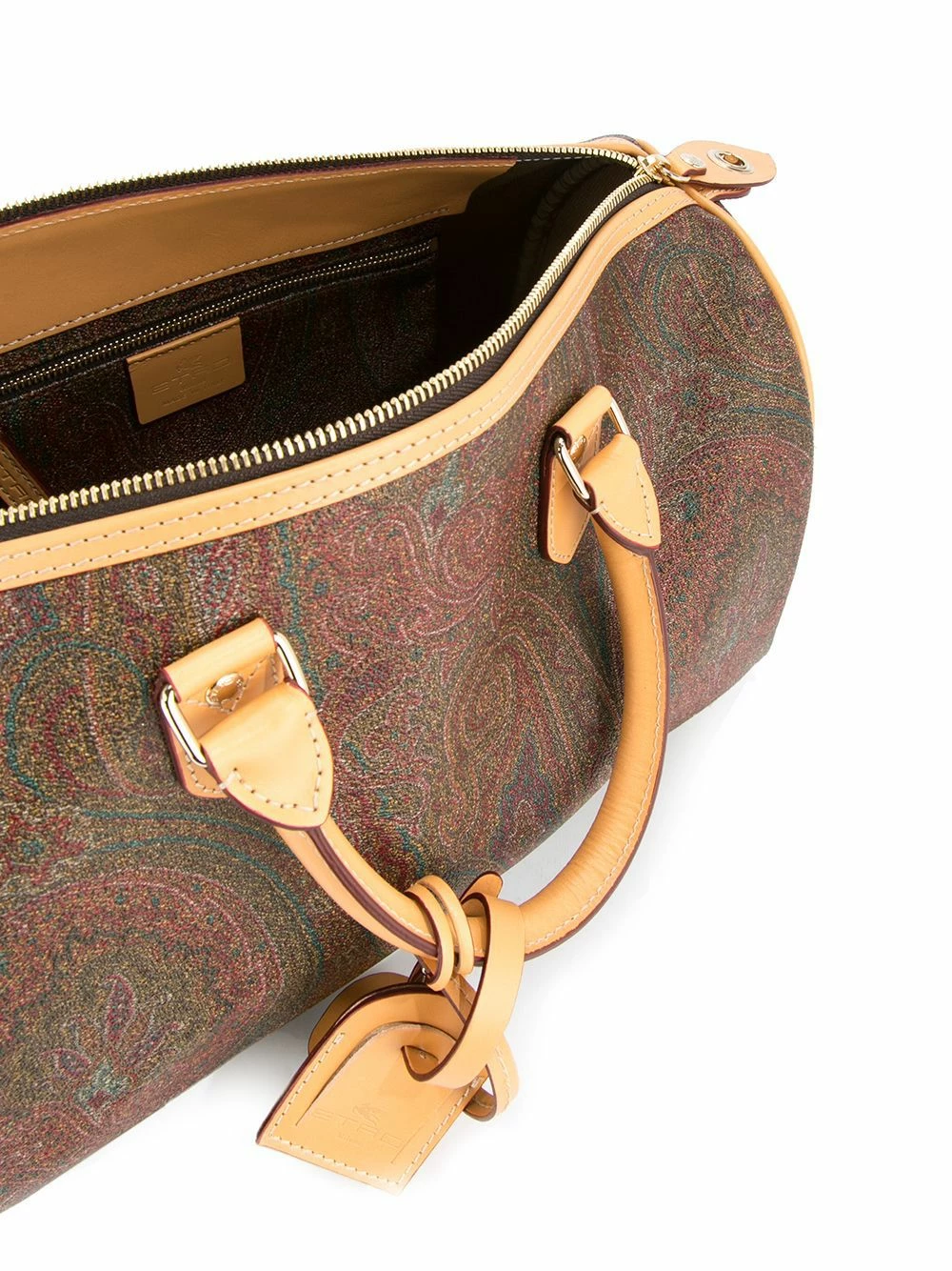 Sac à main à motif cachemire en cuir multicolore Etro avec anses sur le dessus, fermeture zippée sur le dessus, poche intérieure zippée et étiquette de voyage attachée.
