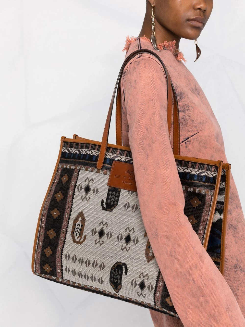 Imprimé abstrait, patch logo sur le devant, deux longues anses sur le dessus, poche intérieure. Couleur : multicolore.