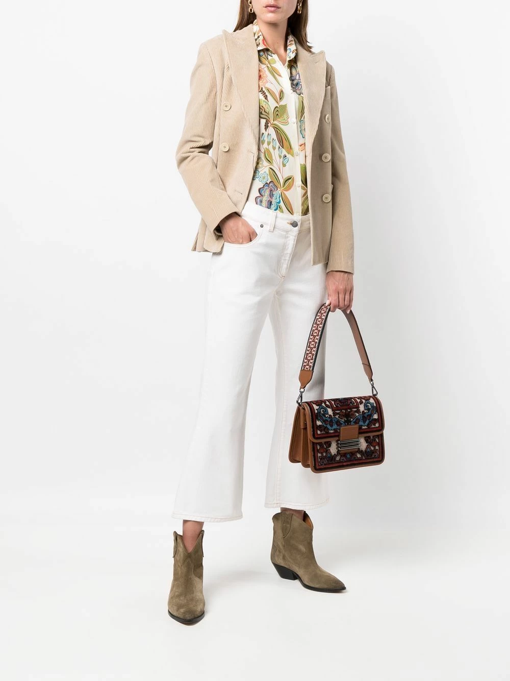 Broderies, compartiment intérieur, rabat sur le dessus, anse classique, bride porté épaule détachable. Matière : coton.