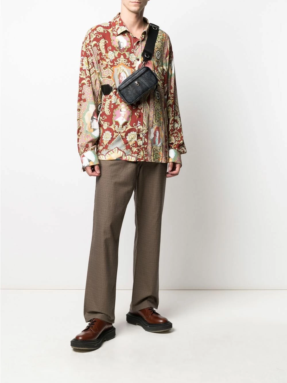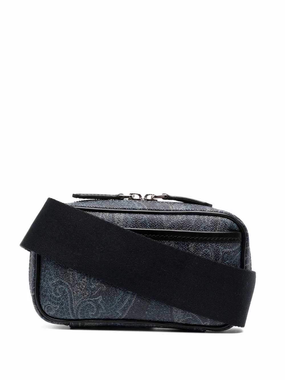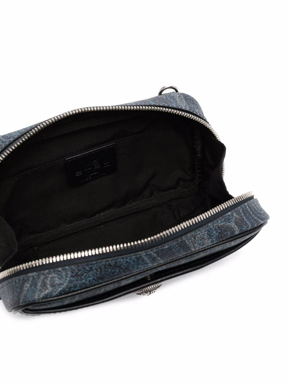 Plaque logo argentée, motif cachemire, fermeture zippée sur le dessus, compartiment principal, poche intérieure plaquée, poche plaquée sur le devant.