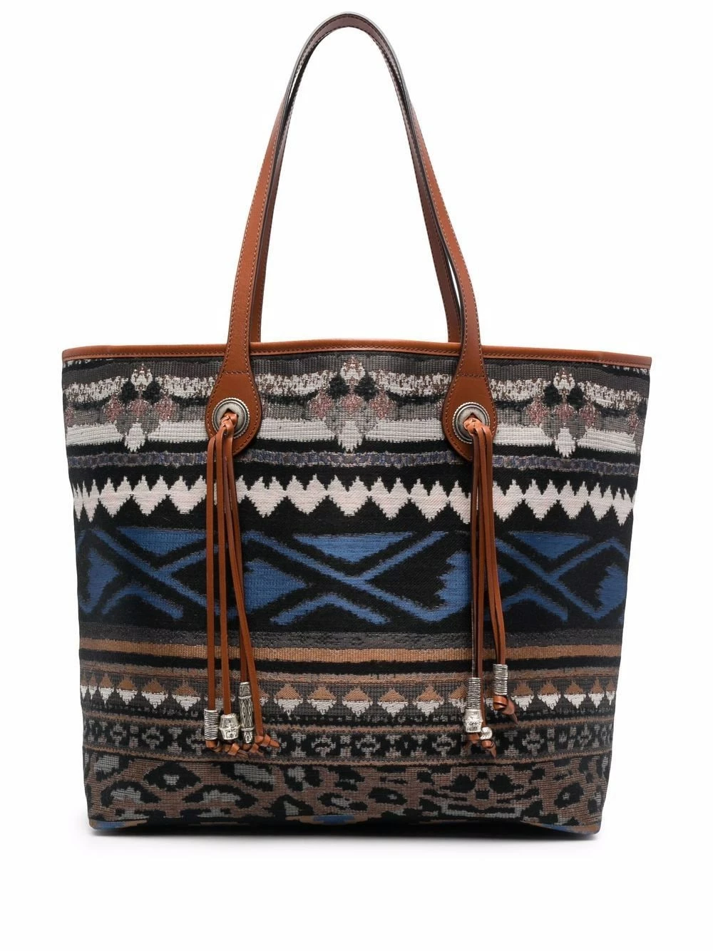 Liseré en cuir, ouverture sur le dessus, anses sur le dessus, compartiment principal, poches intérieures zippées. Couleur : multicolore. Matière : cuir.