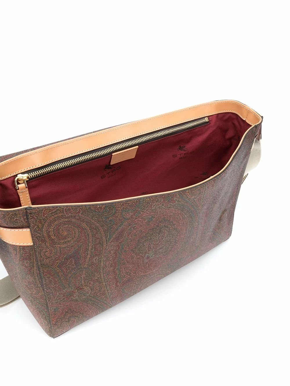 Rabat sur le dessus, bride portée épaule ajustable, compartiment principal, poche intérieure zippée, fermeture zippée à l’arrière. Matière : cuir.