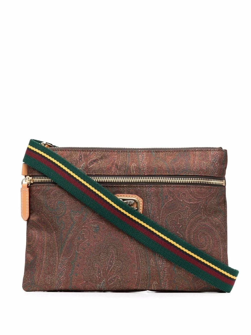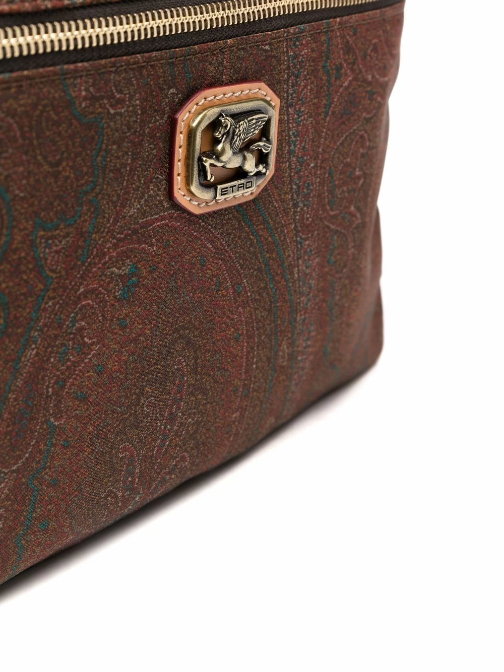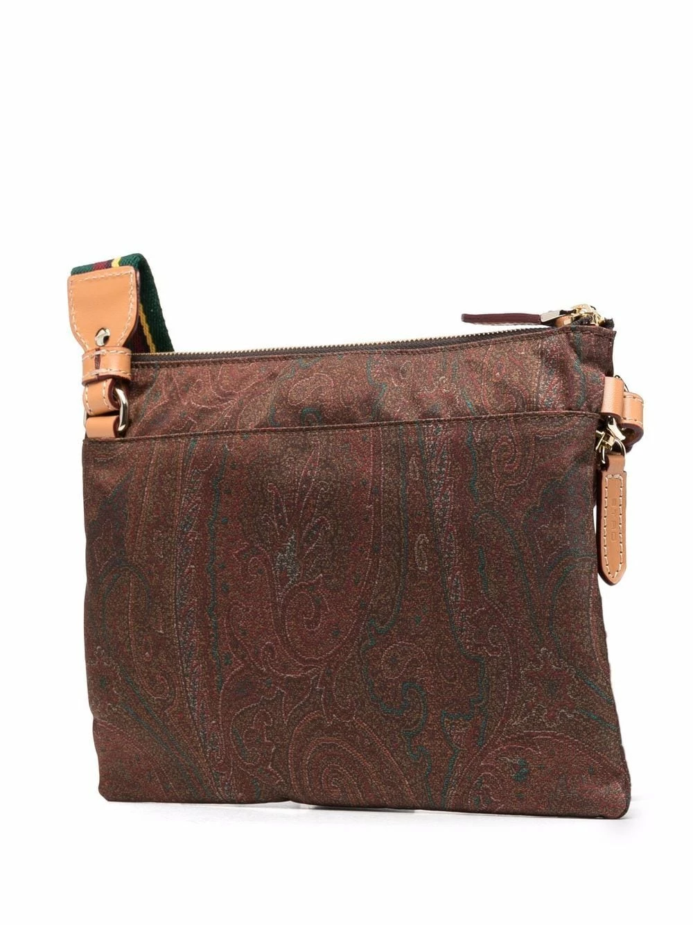 Motif cachemire, plaque logo dorée, patch logo intérieur, compartiment principal, poche intérieure zippée, fermeture zippée devant, bride porté épaule ajustable. Matière : cuir.