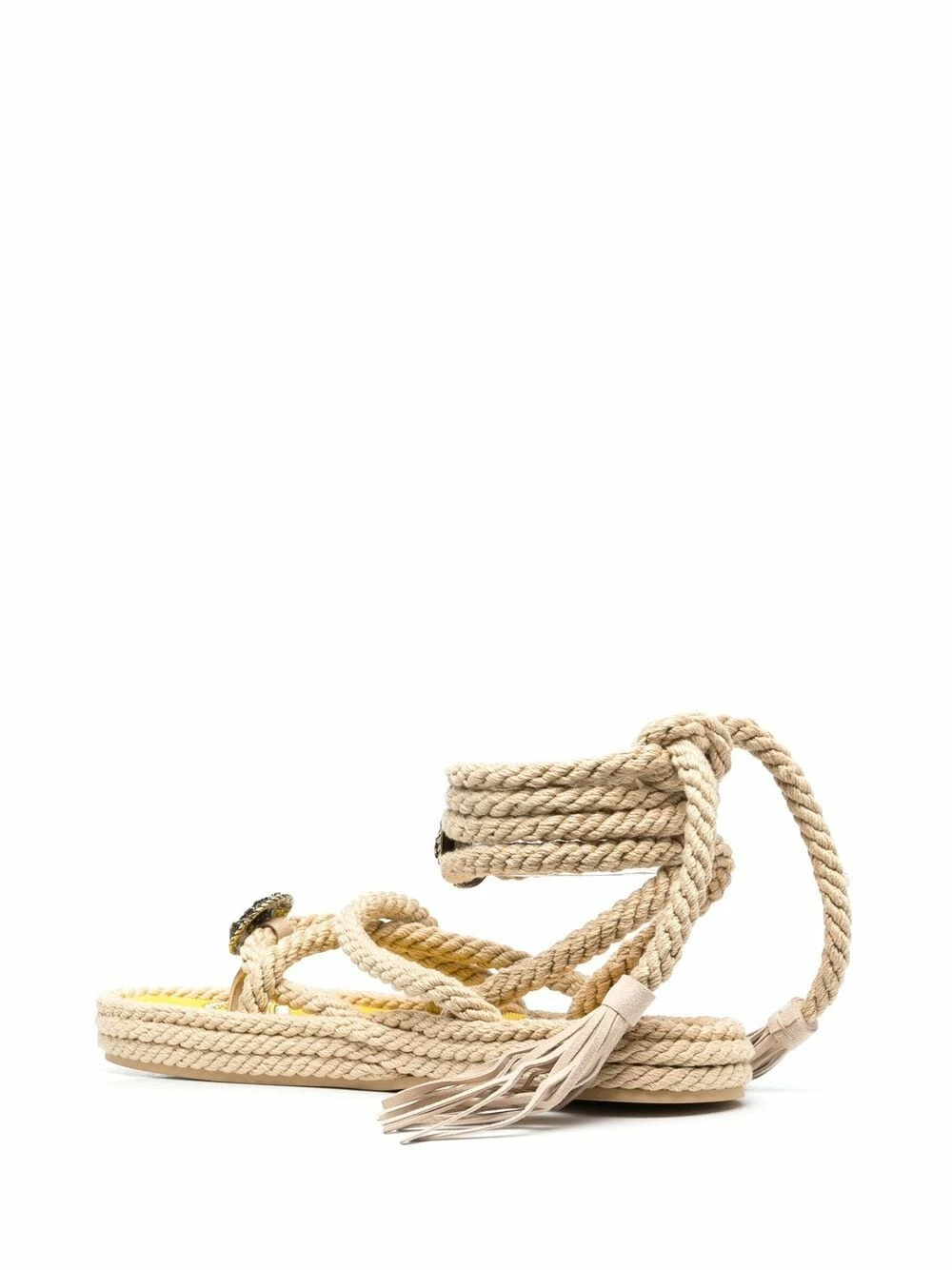 Design portefeuille, détail de corde, bout ouvert, détail de pompon. Couleur : tons neutres. Matière : cuir.