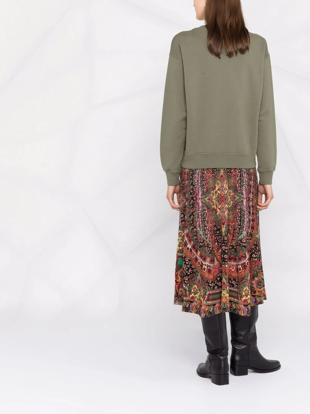 Détail nervuré, logo imprimé à la poitrine, encolure ras du cou, effet d’épaules descendues, manches longues. Couleur : vert. Matière : coton.