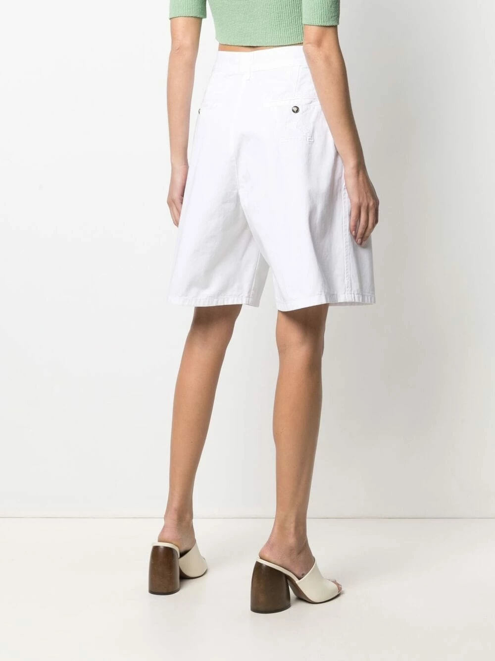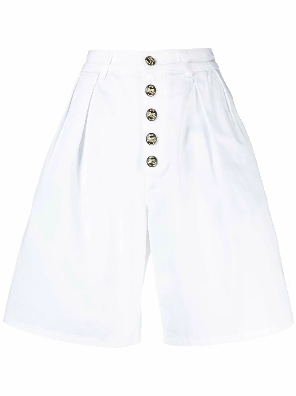 Taille haute, boutonnière sur le devant, deux poches latérales fendues, coupe ample, hauteur genou. Couleur : blanc. Matière : coton.