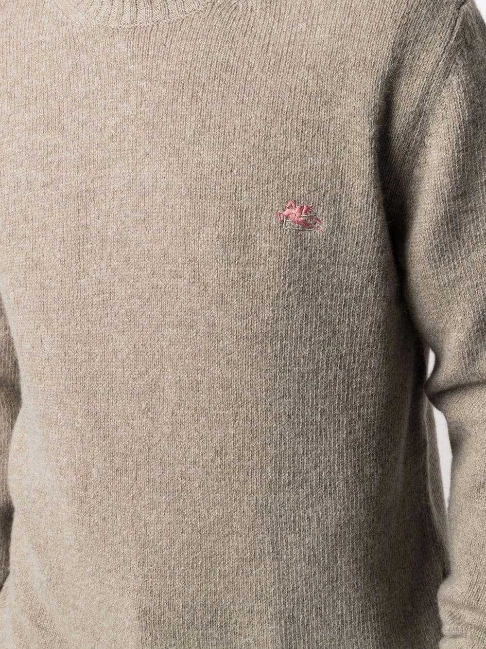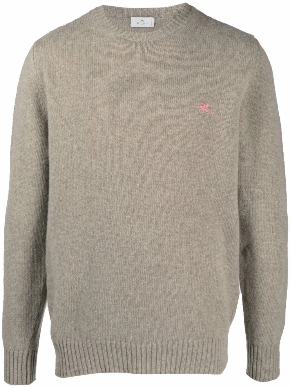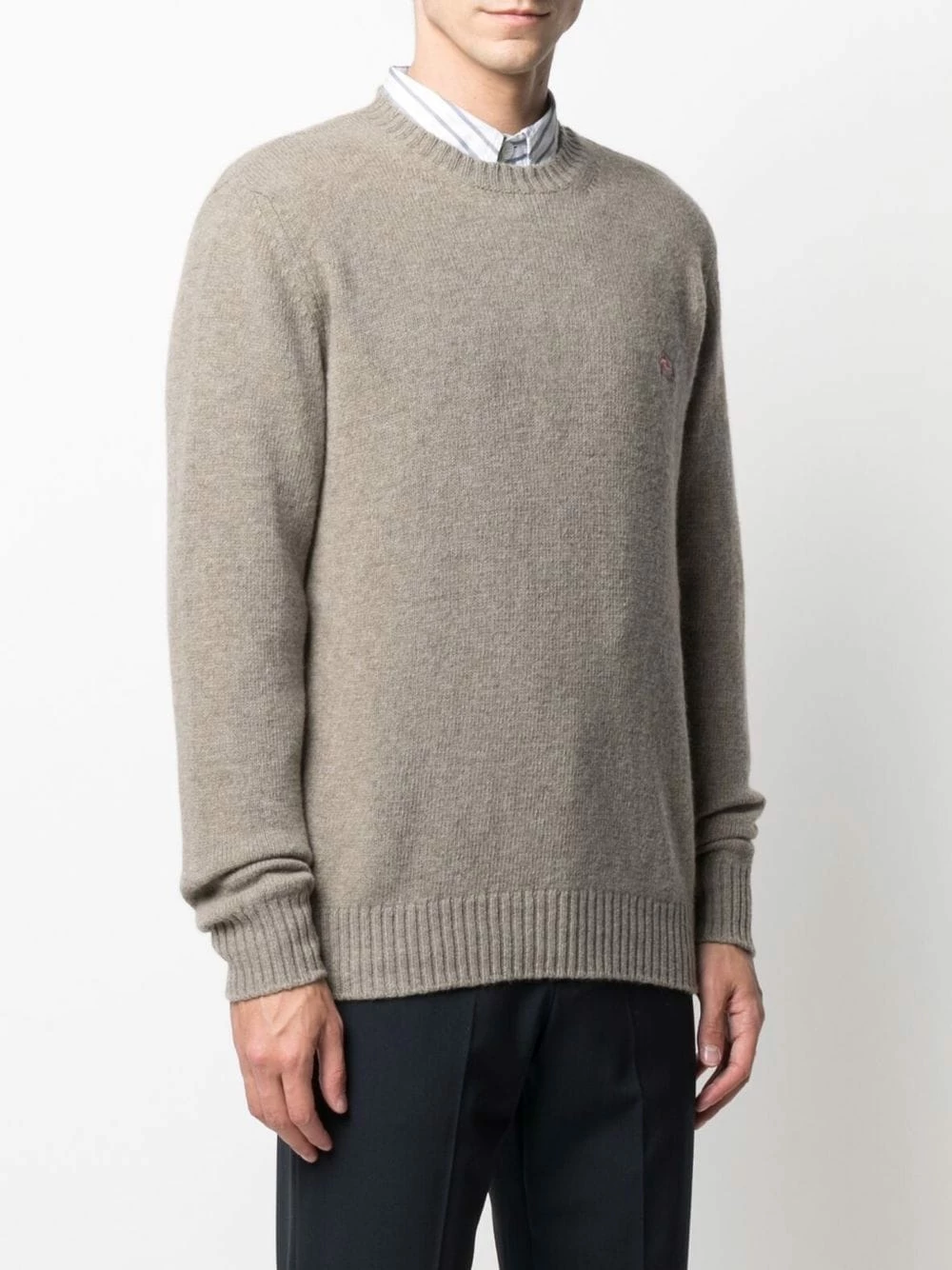 Design tricoté, manches longues, logo brodé sur la poitrine, encolure ras du cou. Matière : laine.