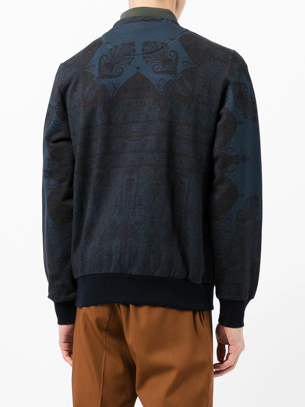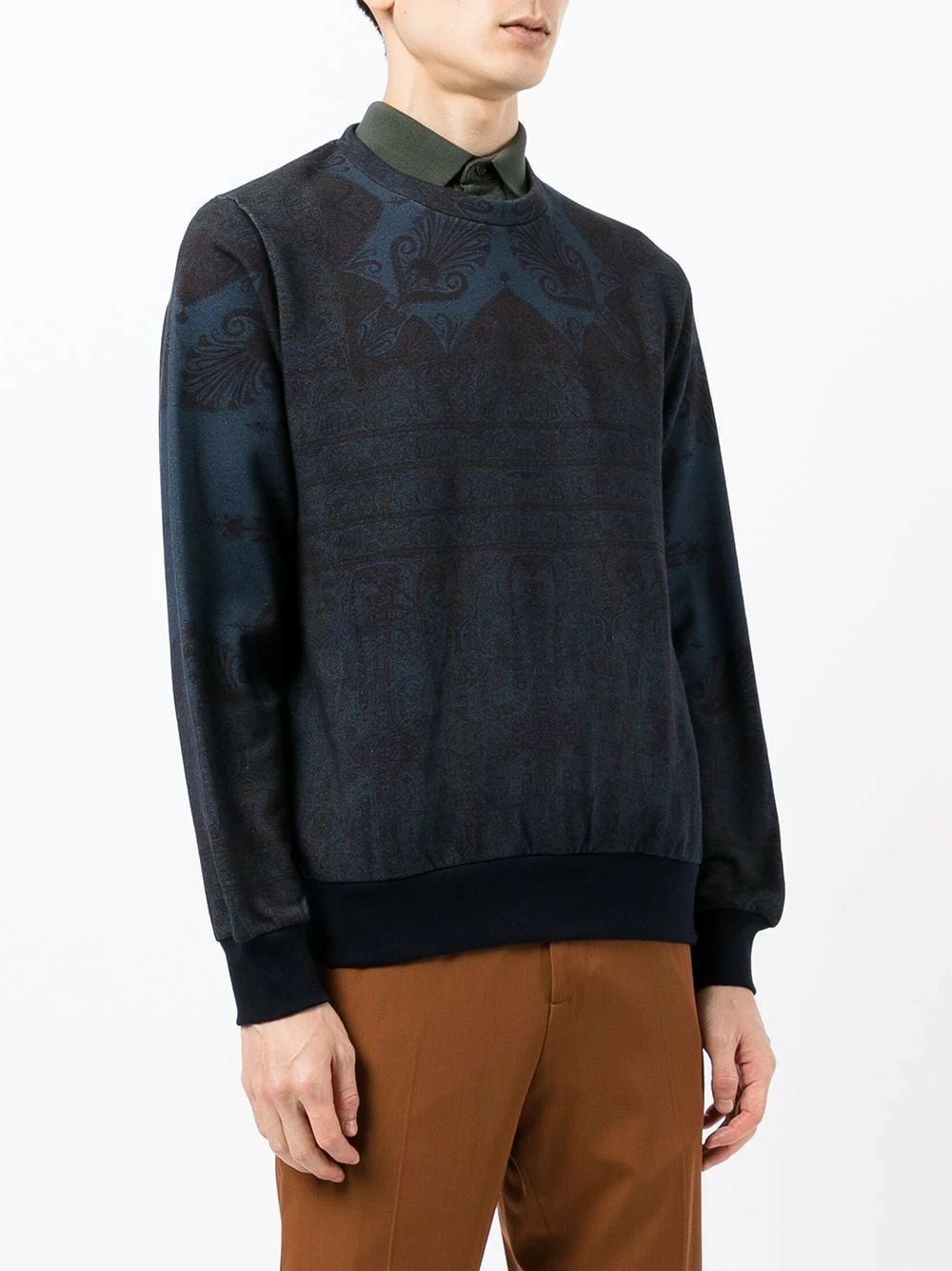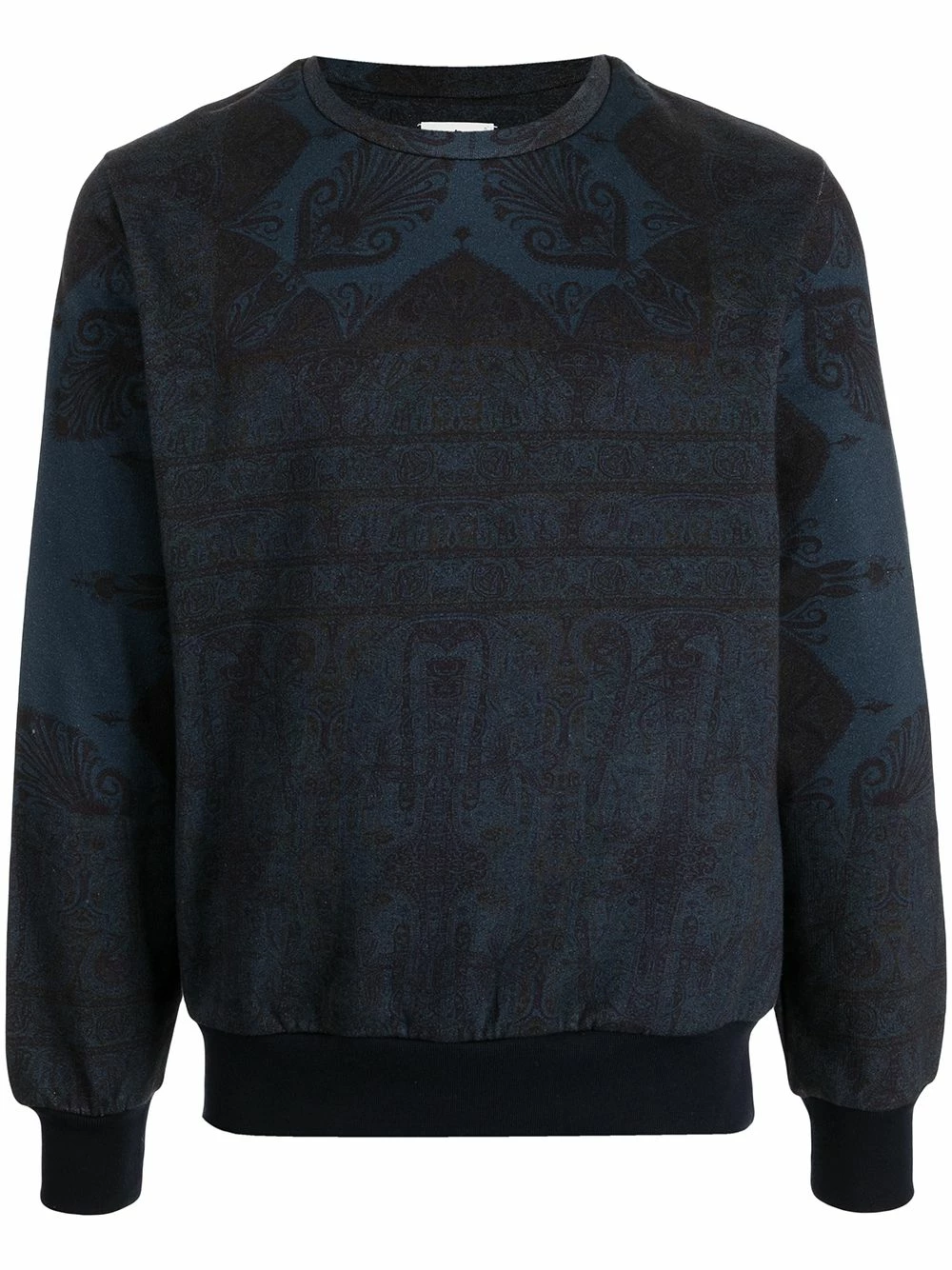 Détail nervuré, motif cachemire, encolure ronde, manches longues, ourlet droit. Matière : coton.