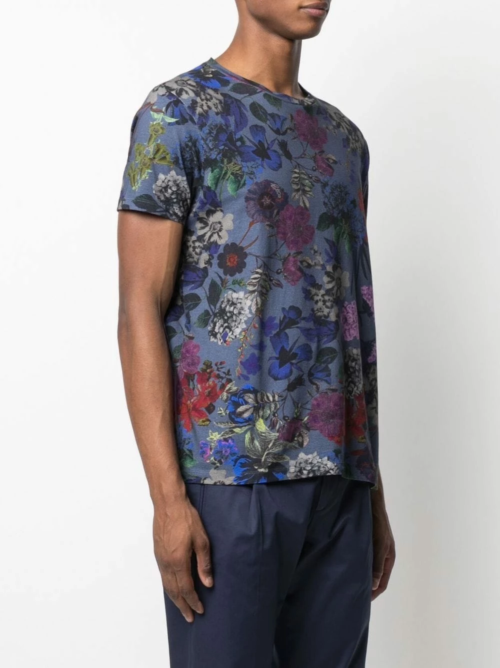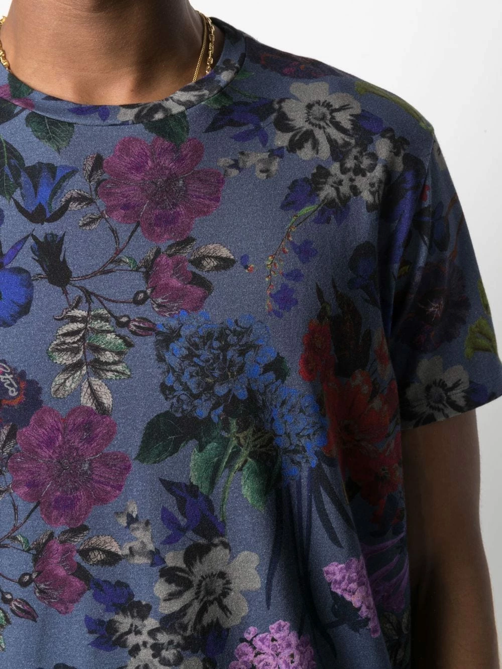 Motif de fleurs, encolure ras du cou, manches courtes, ourlet droit. Matière : coton.