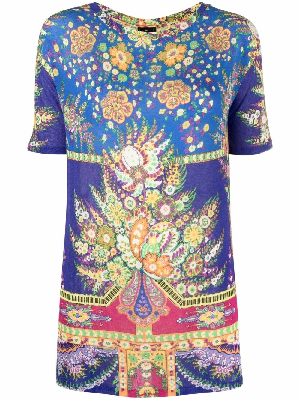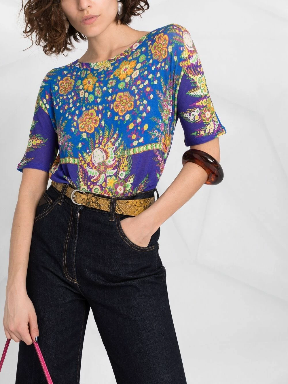 Motif de fleurs, encolure ronde, manches crop, ourlet droit.